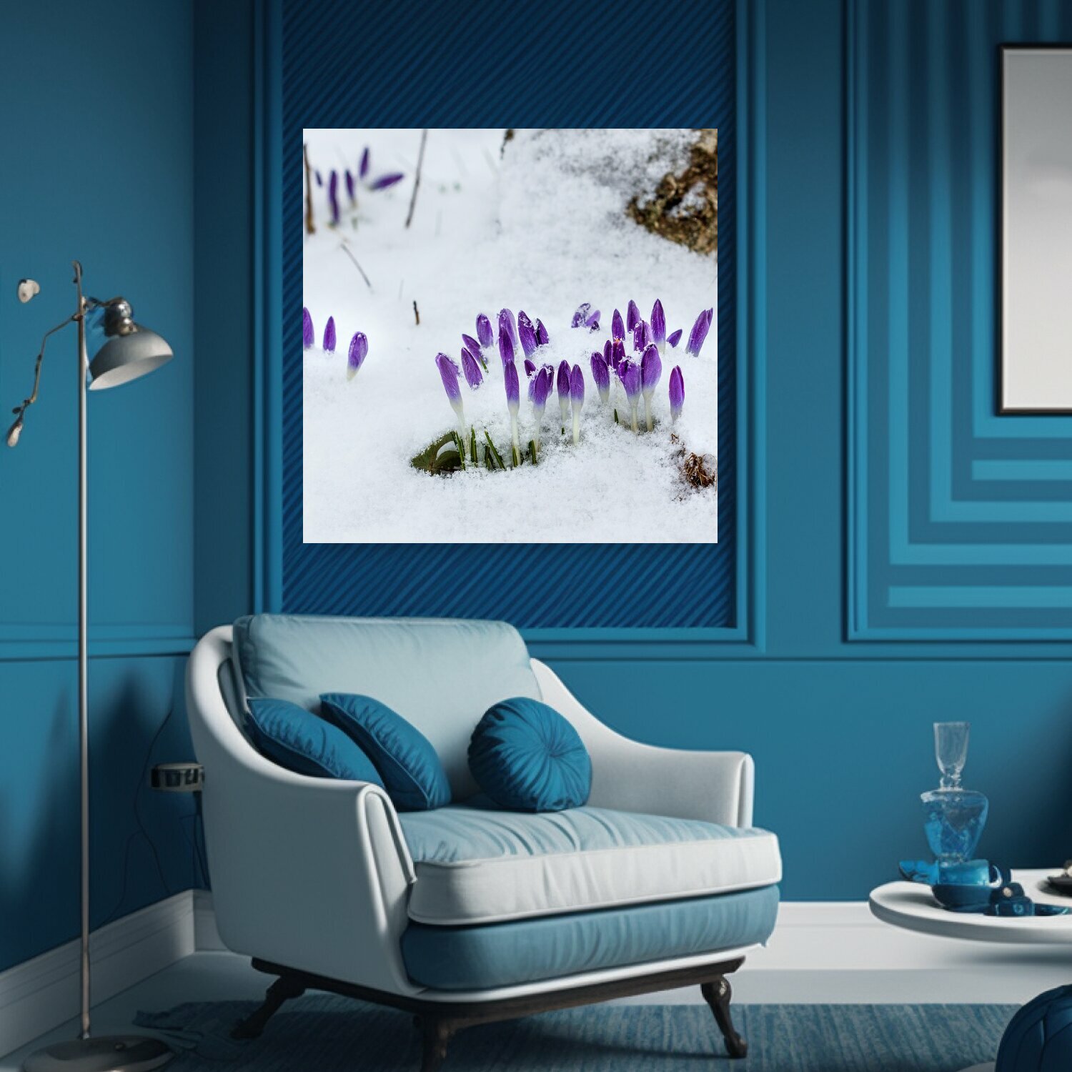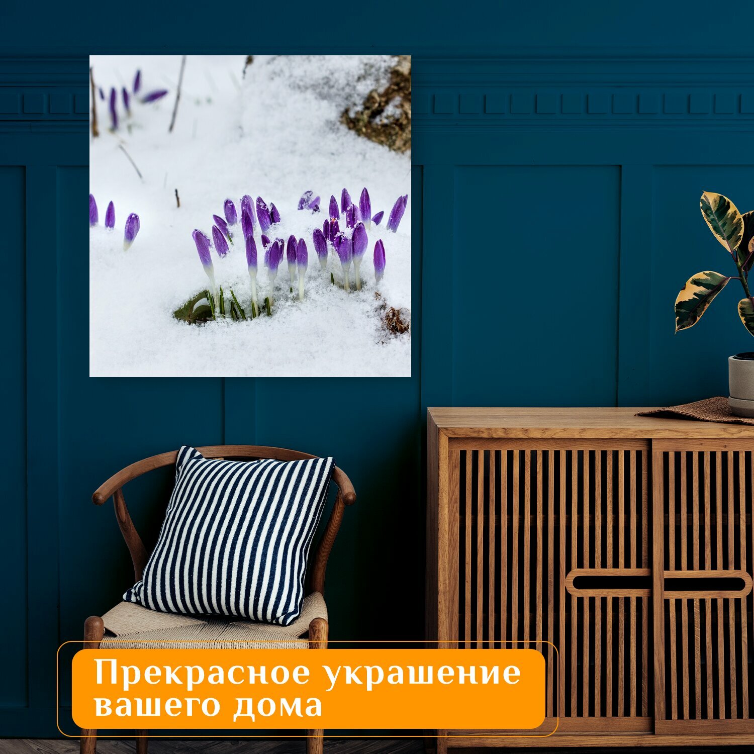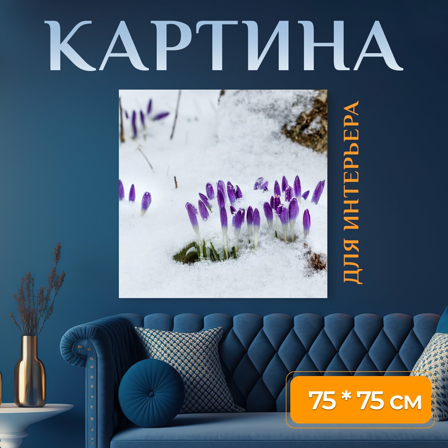 10 цен на Картина на холсте "Рано цветущий, снег, зима" на подрамнике 75х75 см. для интерьера