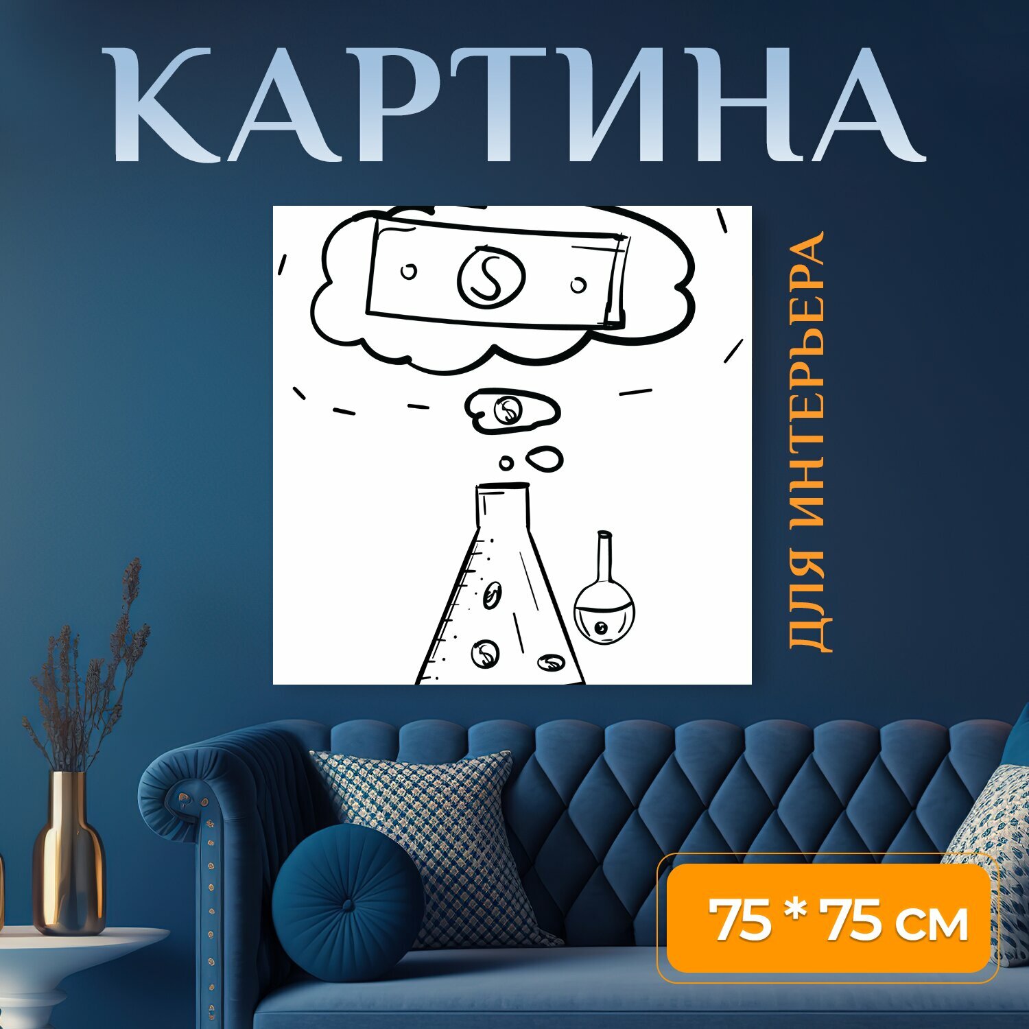 10 цен на Картина на холсте "Химия, деньги, наличные" на подрамнике 75х75 см. для интерьера