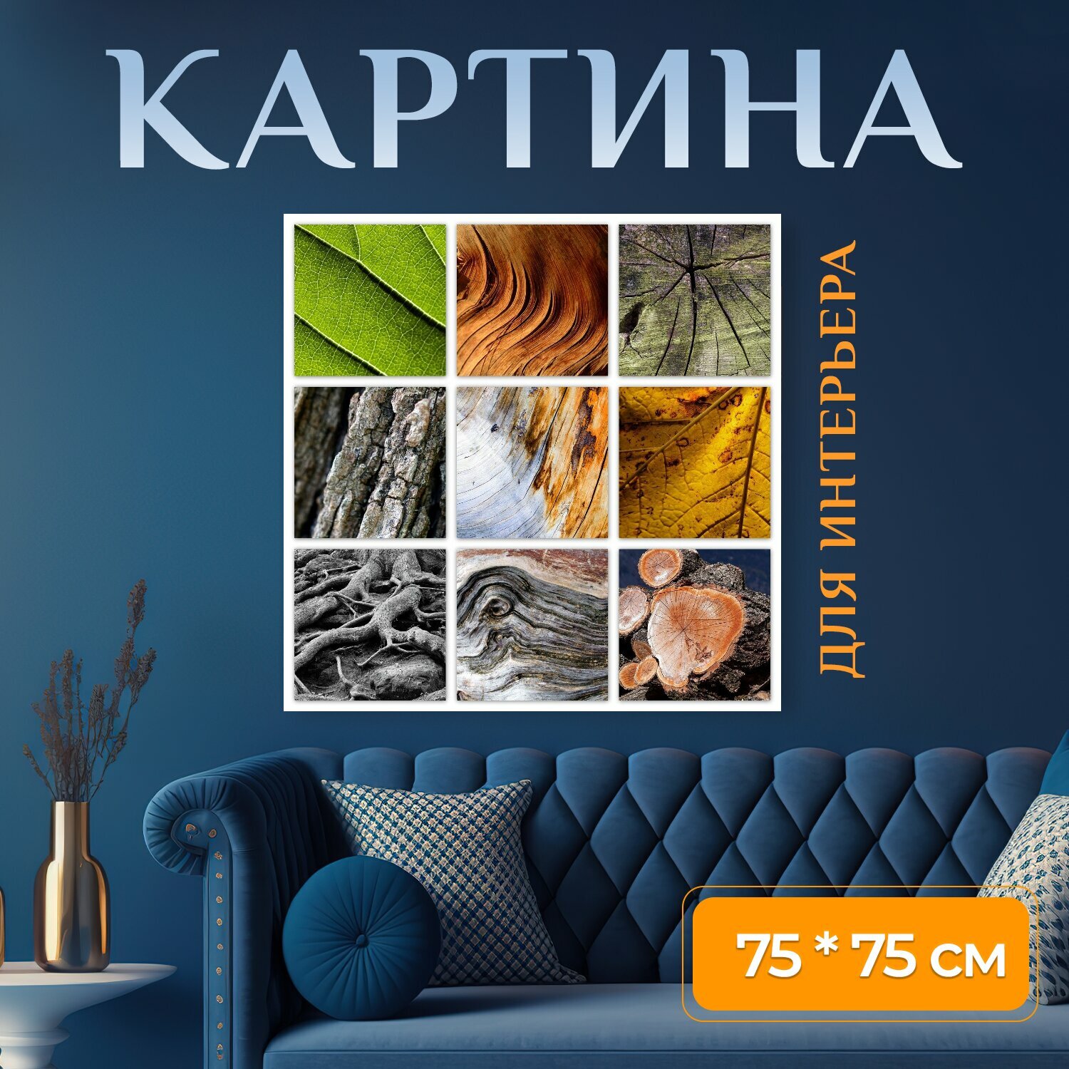 10 цен на Картина на холсте "Дерево, природа, древесина" на подрамнике 75х75 см. для интерьера