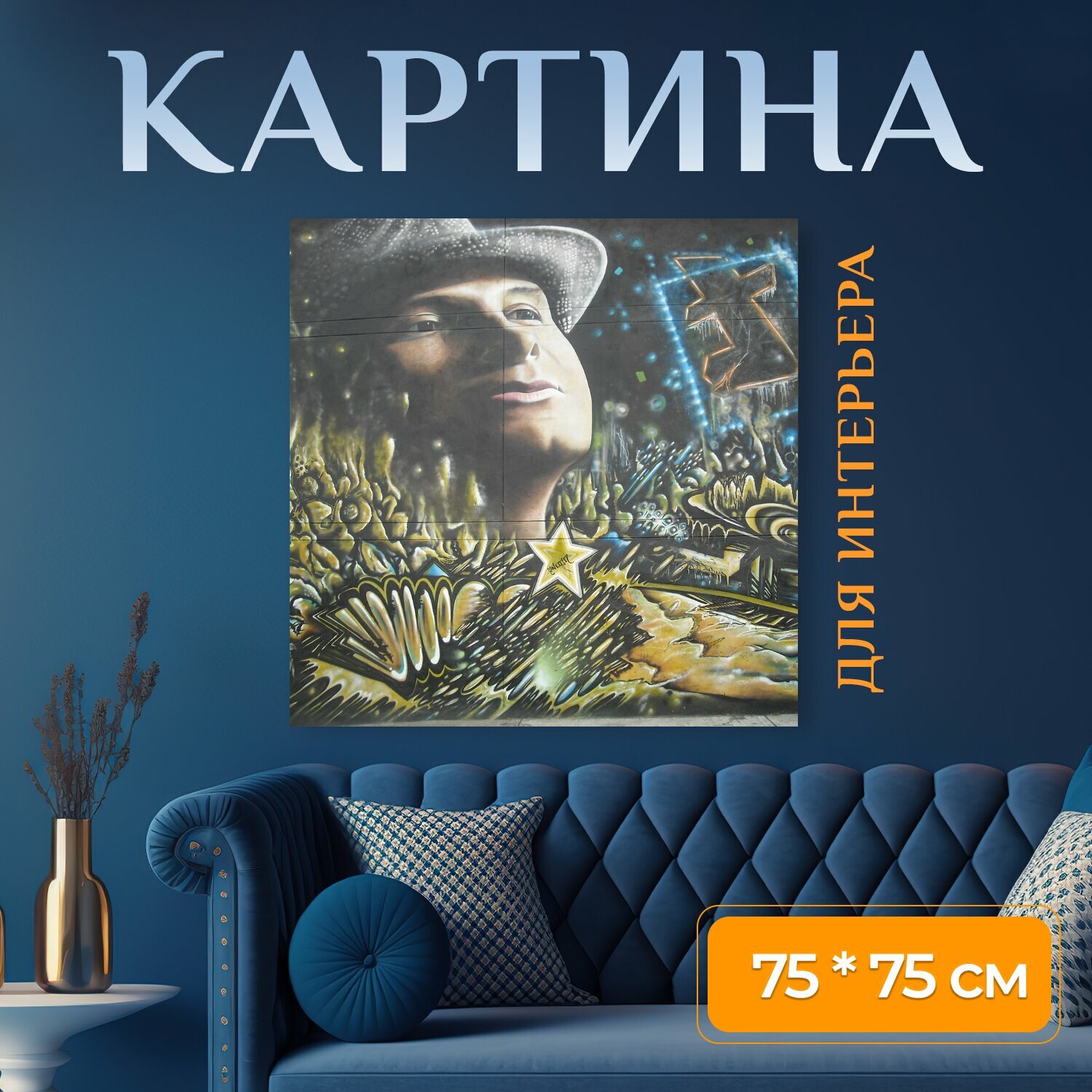 10 цен на Картина на холсте "Городское искусство, богота, колумбия" на подрамнике 75х75 см. для интерьера
