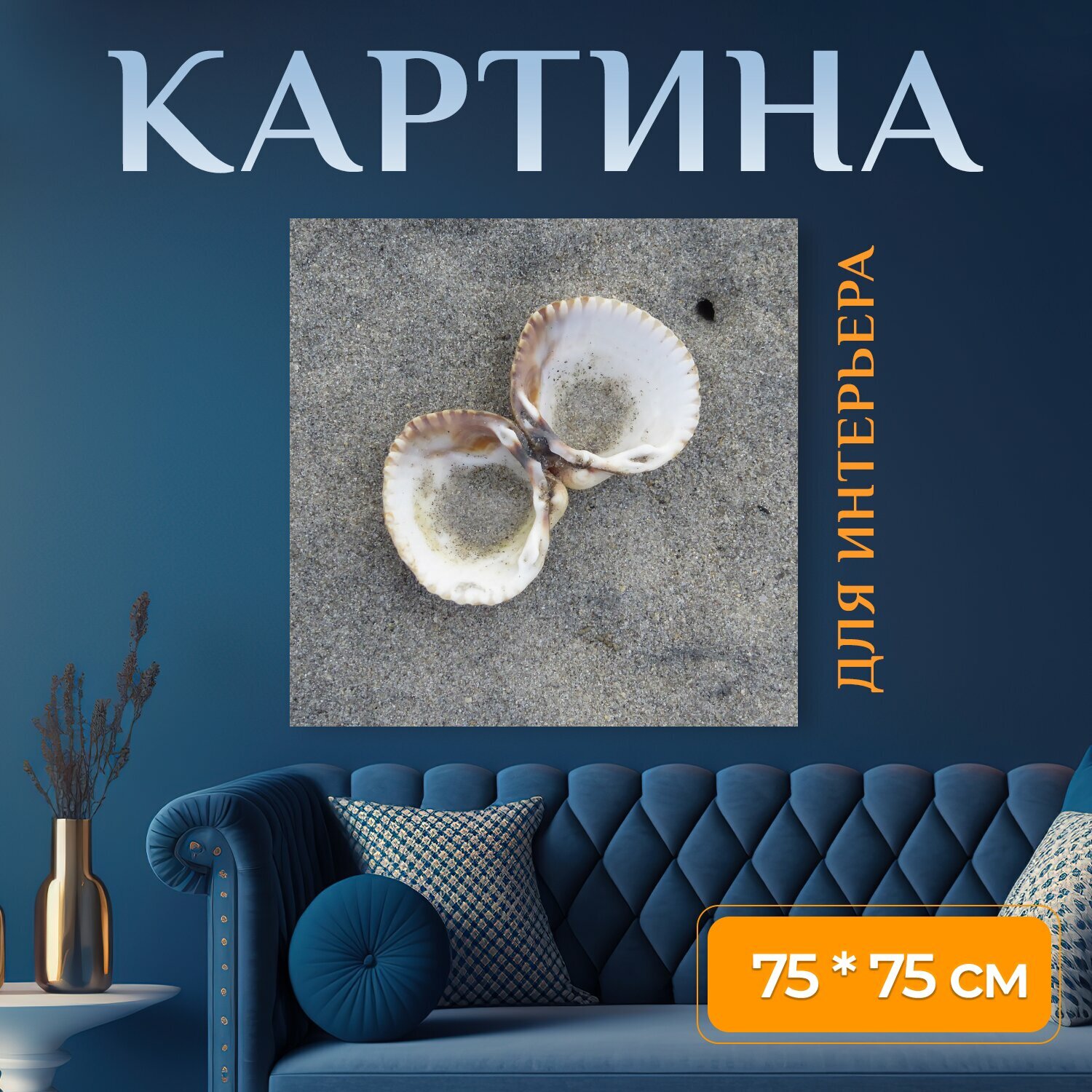 Картина на холсте "Море, оболочка, пляж" на подрамнике 75х75 см. для интерьера информация: