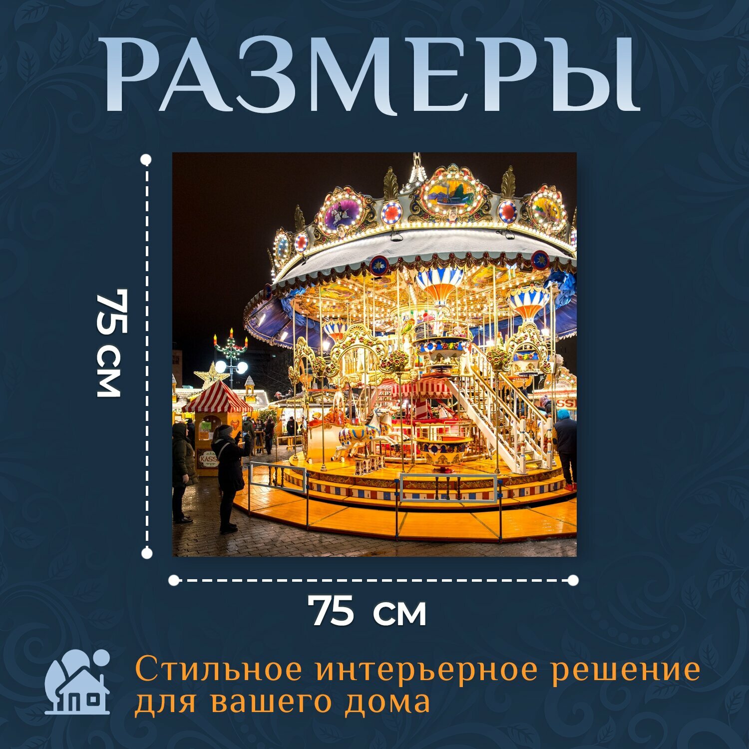 Картина на холсте "Карусель, рождественский магазин, поездка" на подрамнике 75х75 см. для интерьера информация: