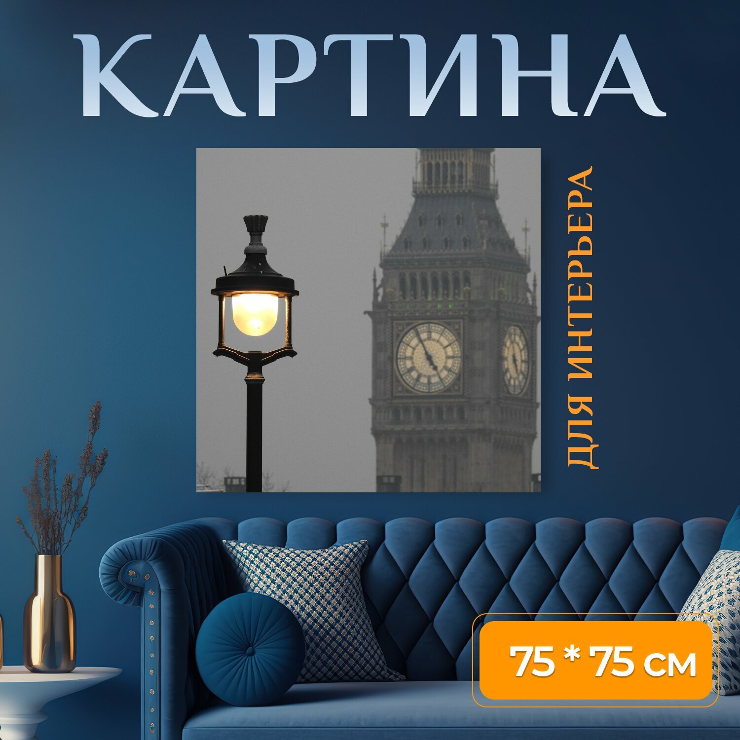 10 цен на Картина на холсте "Уличный фонарь, лондон, напольная лампа" на подрамнике 75х75 см. для интерьера
