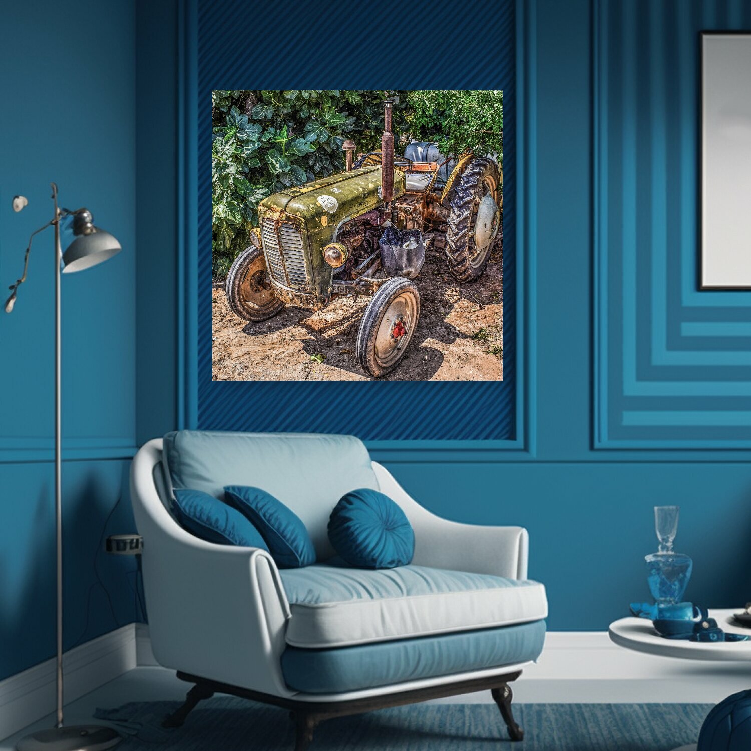 10 цен на Картина на холсте "Трактор, ферма, сельская местность" на подрамнике 75х75 см. для интерьера