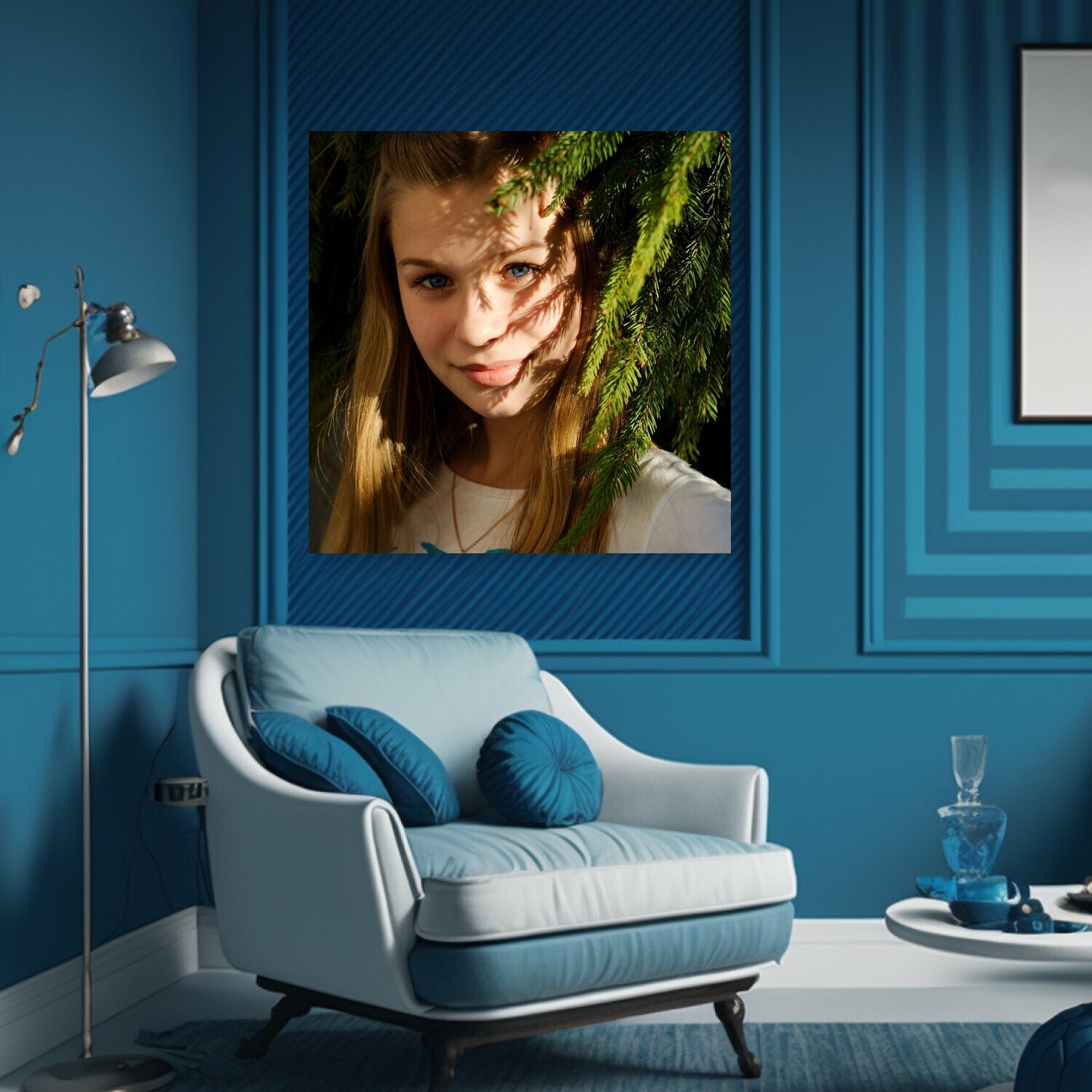 10 цен на Картина на холсте "Девушка, глаза, портрет" на подрамнике 75х75 см. для интерьера