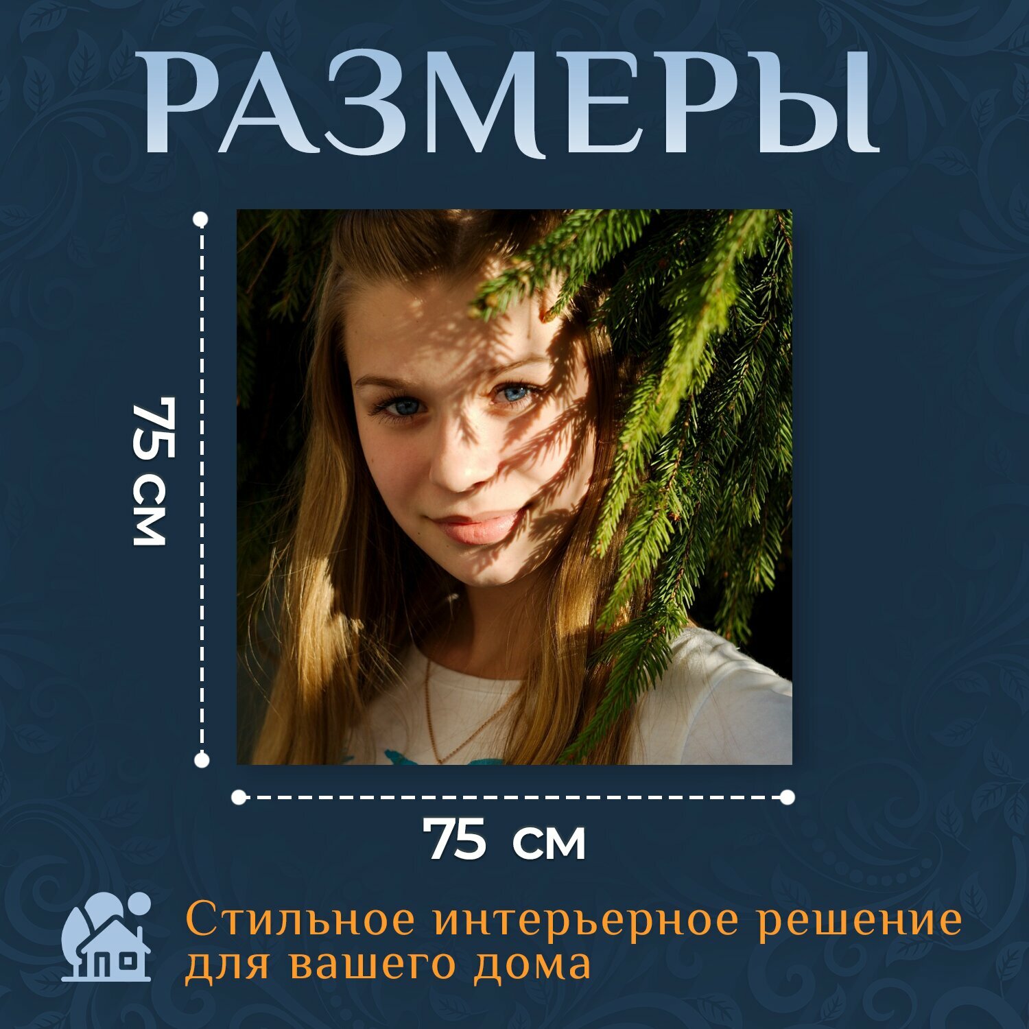 Картина на холсте "Девушка, глаза, портрет" на подрамнике 75х75 см. для интерьера информация: