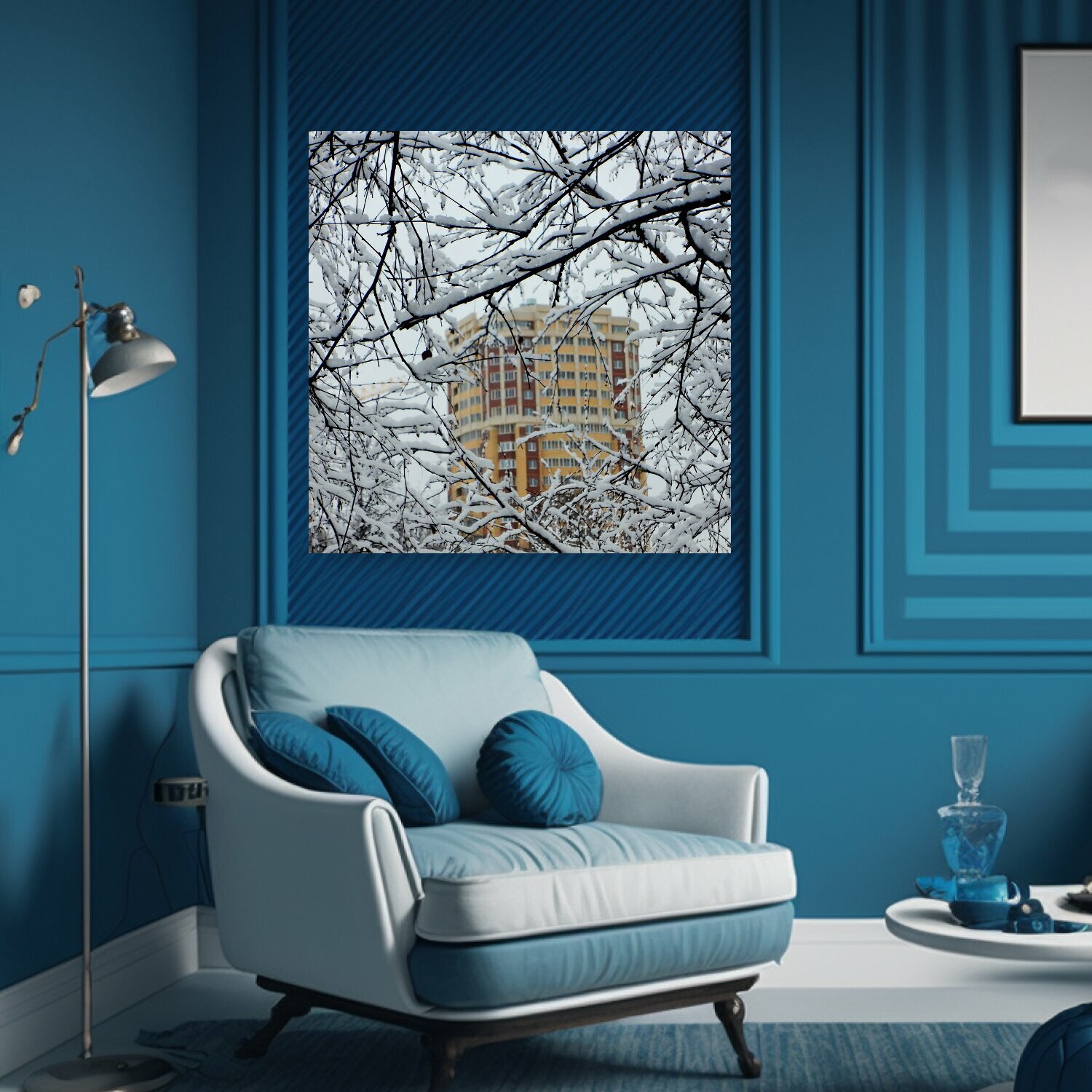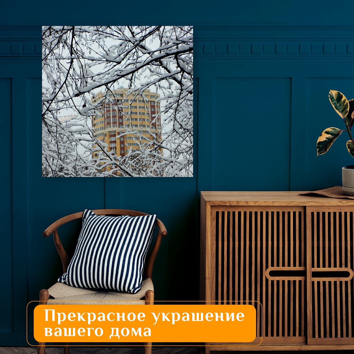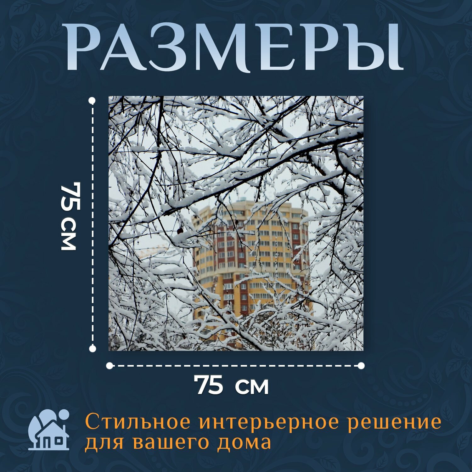 10 цен на Картина на холсте "Зима, снег, ветки" на подрамнике 75х75 см. для интерьера