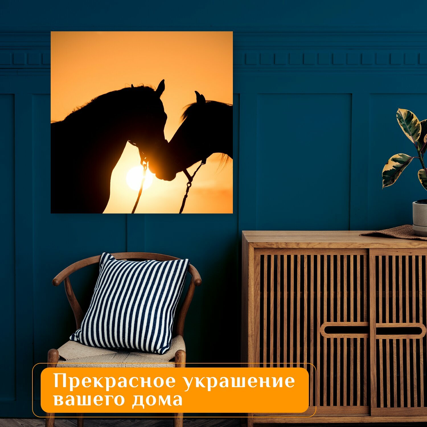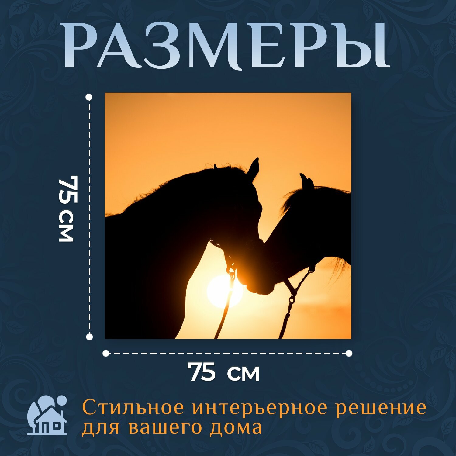 Картина на холсте "Лошади, силуэты, заход солнца" на подрамнике 75х75 см. для интерьера информация: