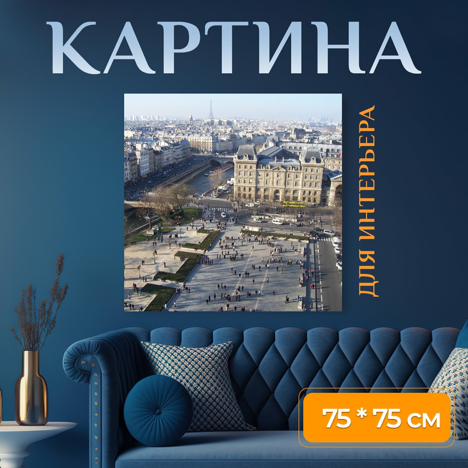 10 цен на Картина на холсте "Париж, франция, мировоззрение" на подрамнике 75х75 см. для интерьера