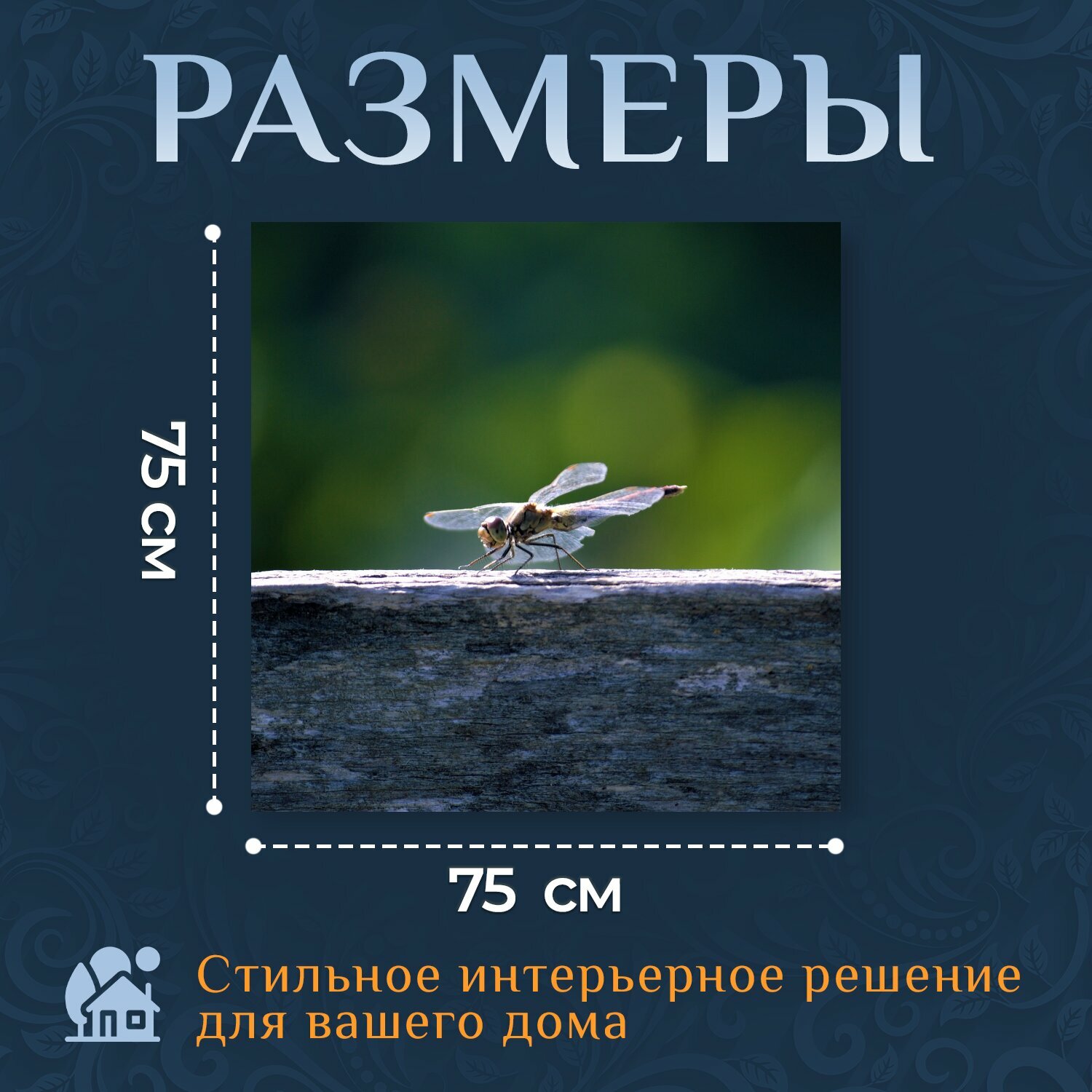 Картина на холсте "Стрекоза, одинокий, уединенный" на подрамнике 75х75 см. для интерьера информация: