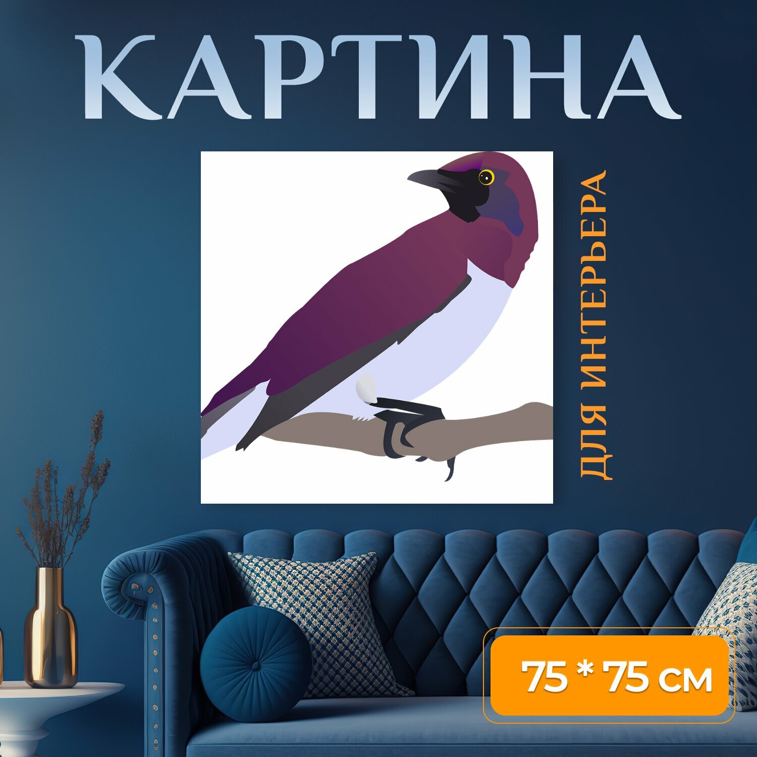 10 цен на Картина на холсте "Птицы, фиолетовый, жало" на подрамнике 75х75 см. для интерьера