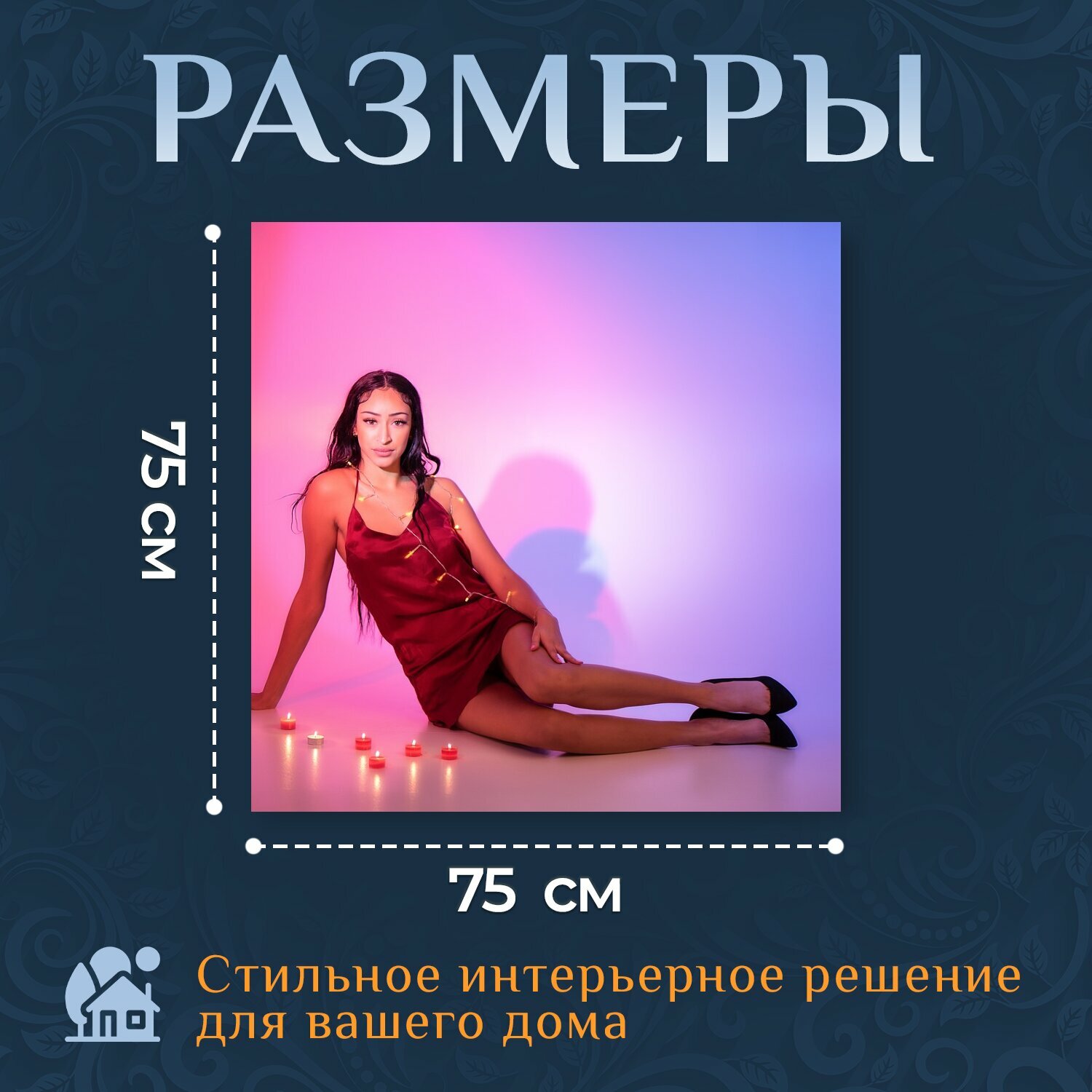 Картина на холсте "Модель, свет, девочка" на подрамнике 75х75 см. для интерьера информация: