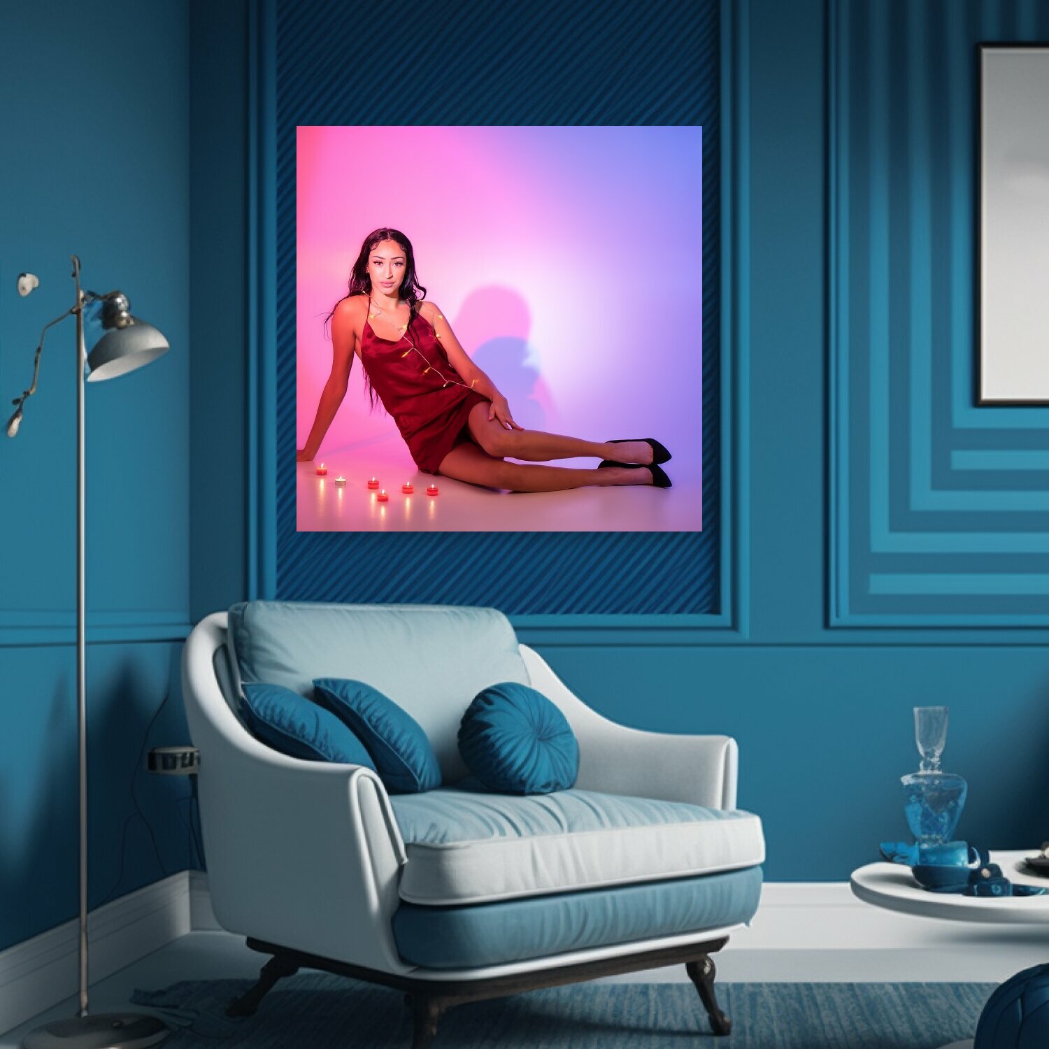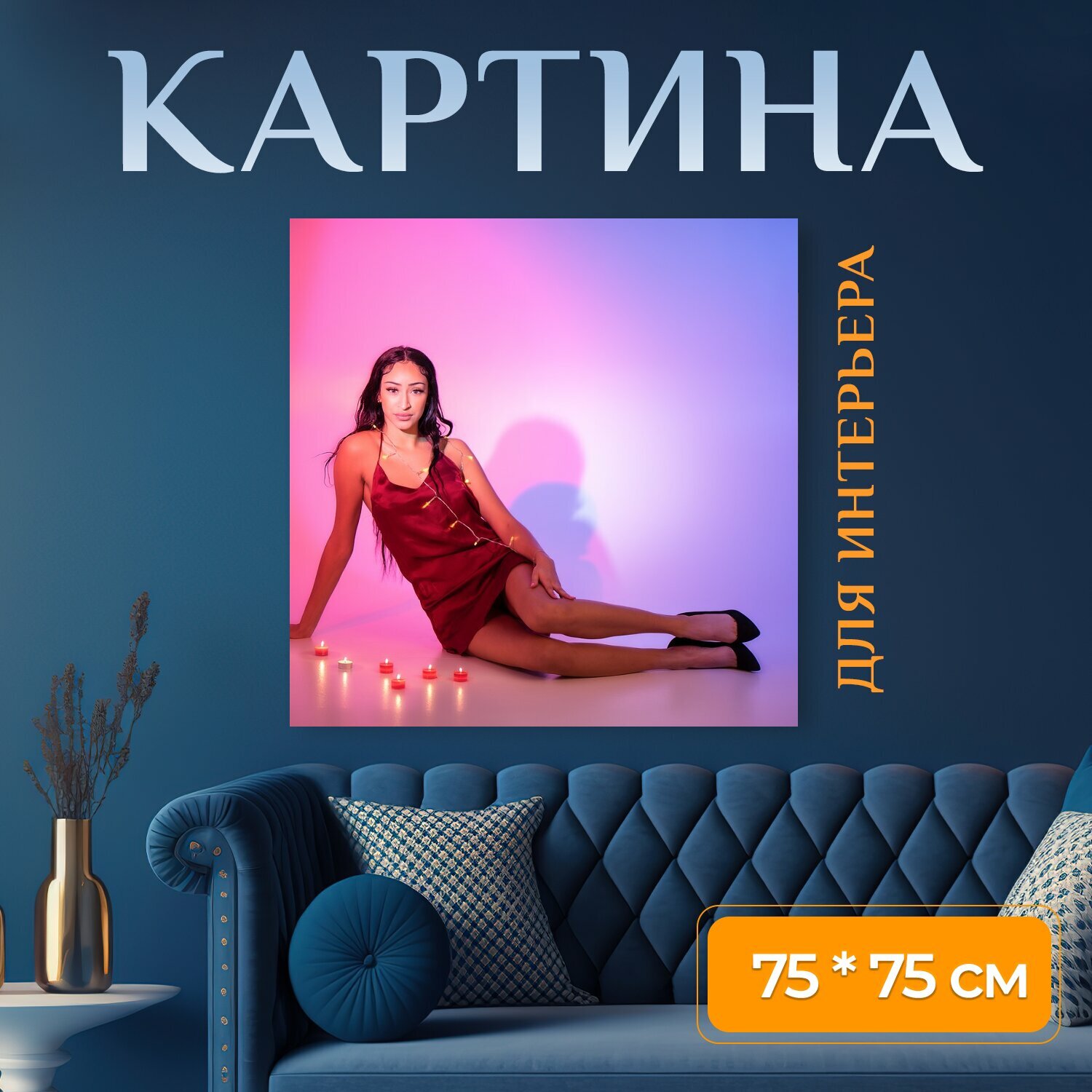 10 цен на Картина на холсте "Модель, свет, девочка" на подрамнике 75х75 см. для интерьера