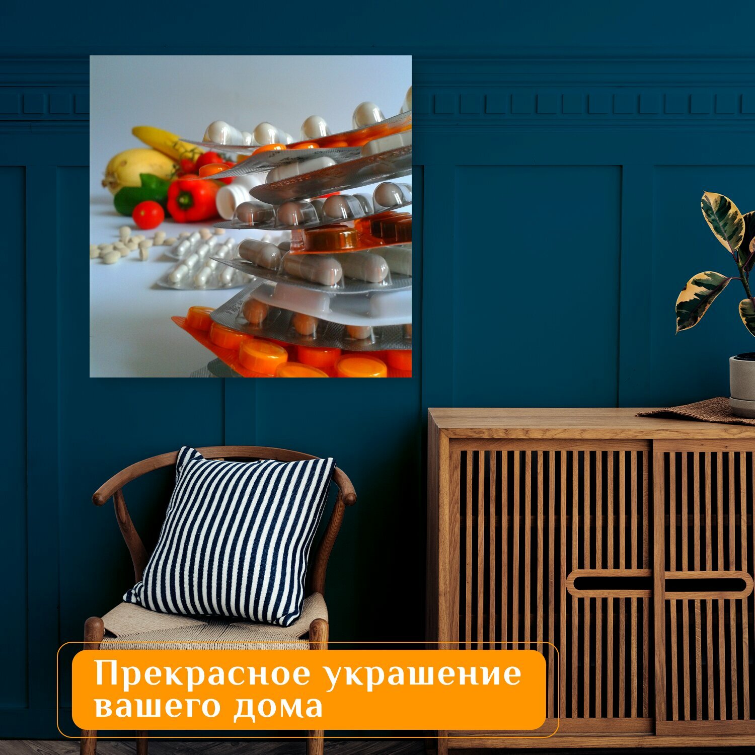 10 цен на Картина на холсте "Витамины, таблетки, лекарства" на подрамнике 75х75 см. для интерьера