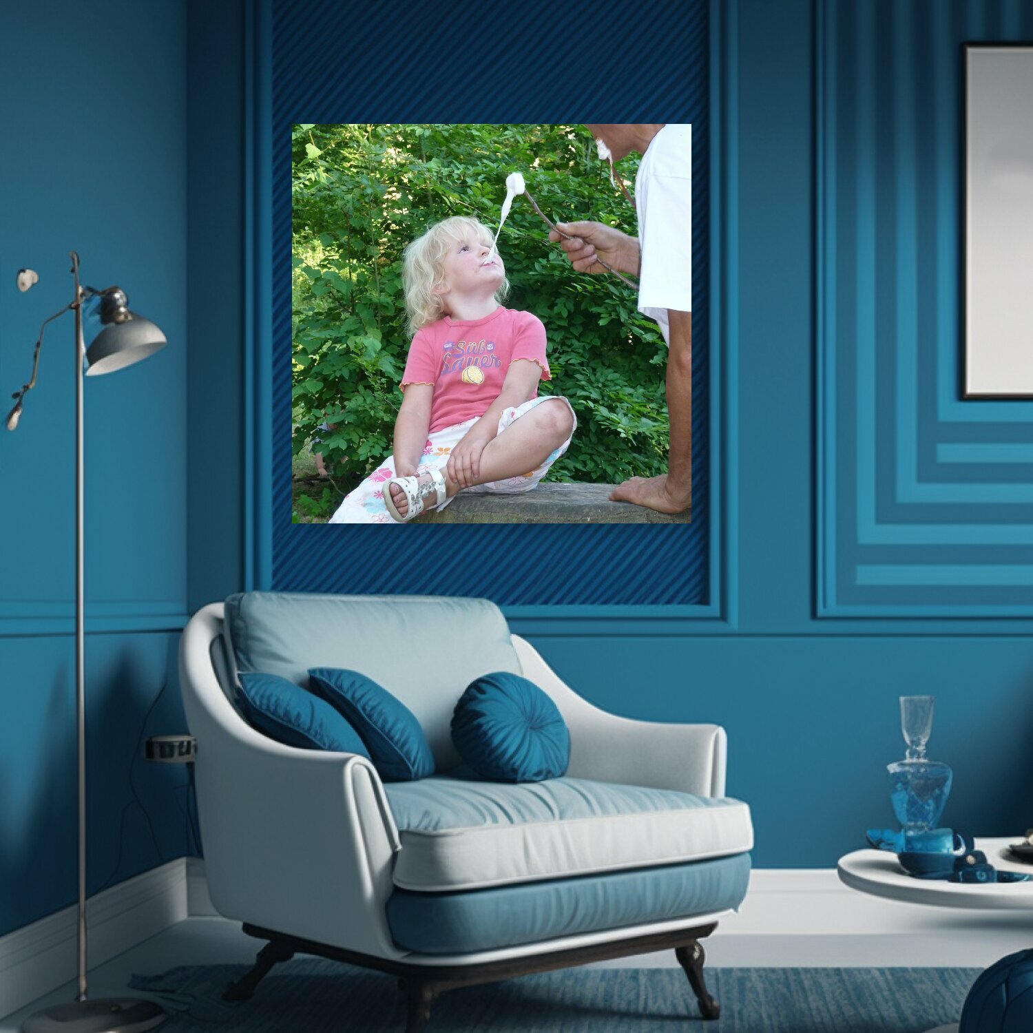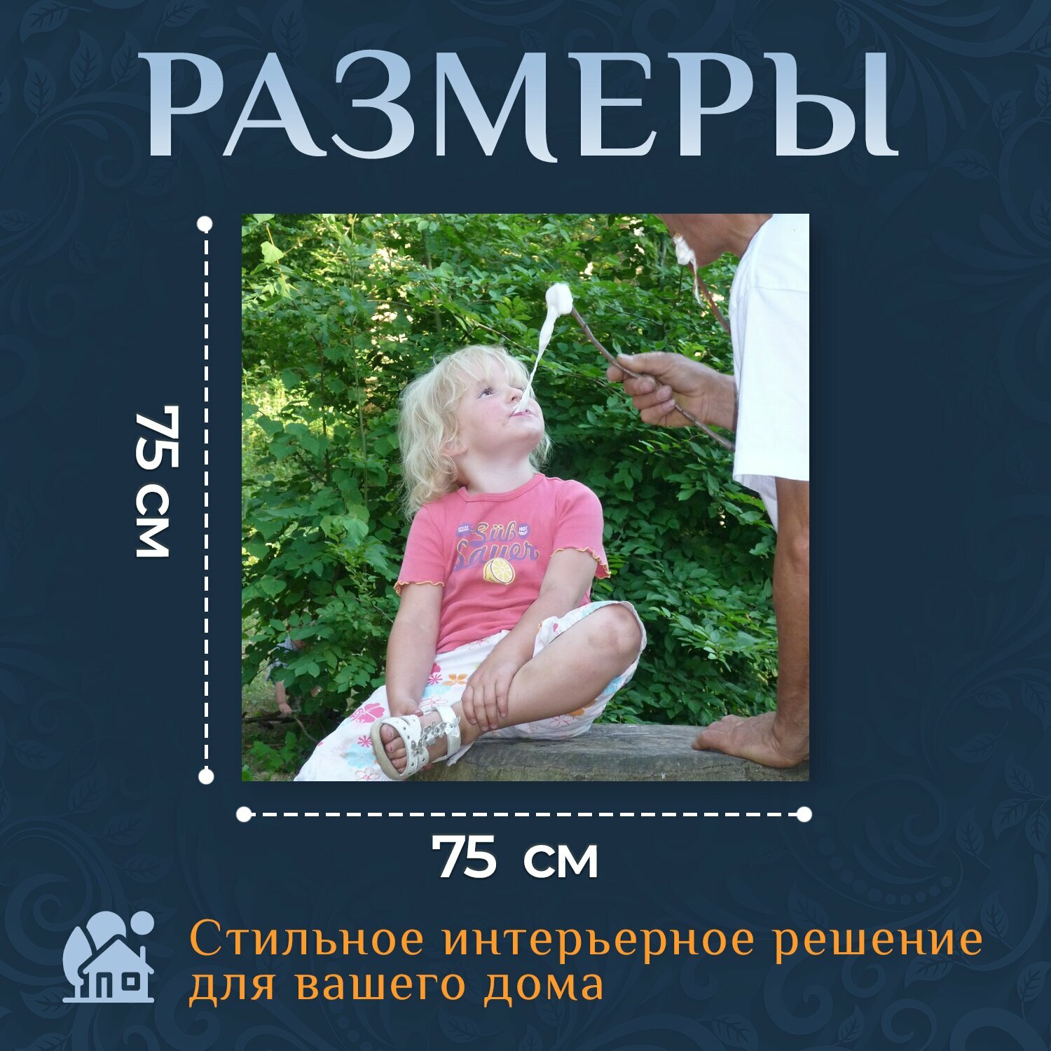 10 цен на Картина на холсте "Ребенок, отец, гриль" на подрамнике 75х75 см. для интерьера
