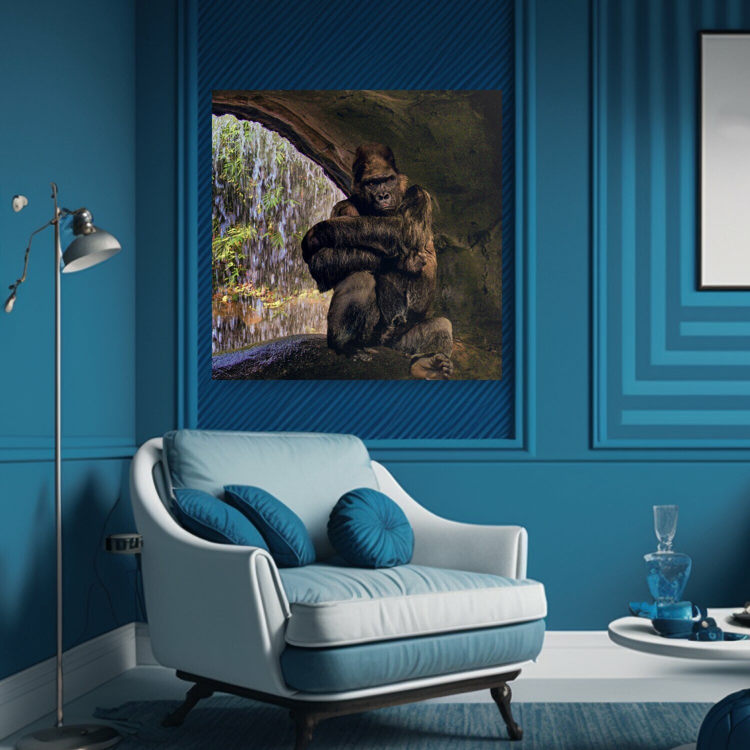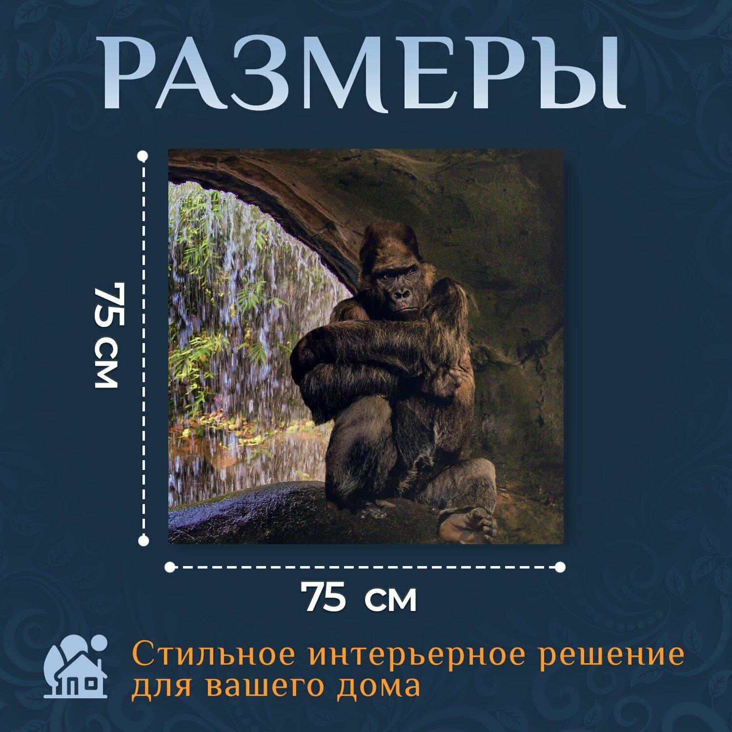 10 цен на Картина на холсте "Горилла, обезьяна, мрачный" на подрамнике 75х75 см. для интерьера