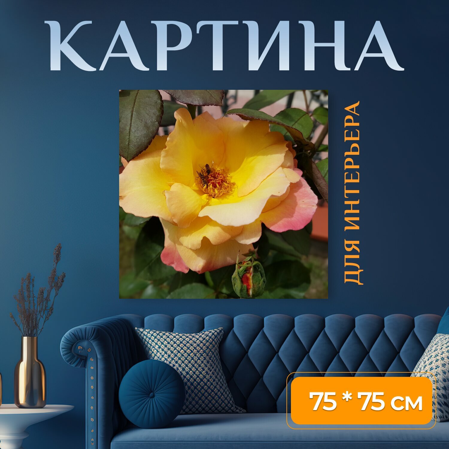10 цен на Картина на холсте "Роуз, цветы, летом" на подрамнике 75х75 см. для интерьера