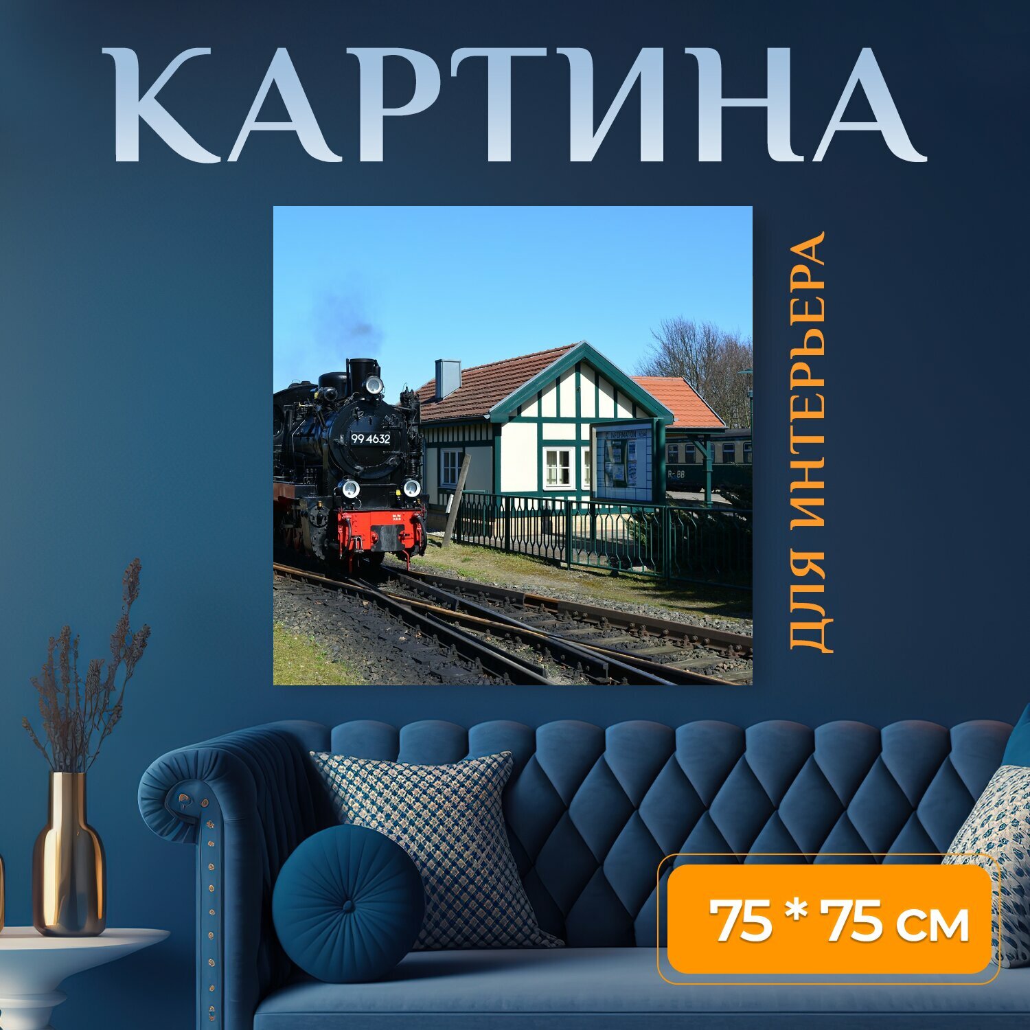 10 цен на Картина на холсте "Паровоз, разендер роланд, узкоколейная железная дорога" на подрамнике 75х75 см. для интерьера