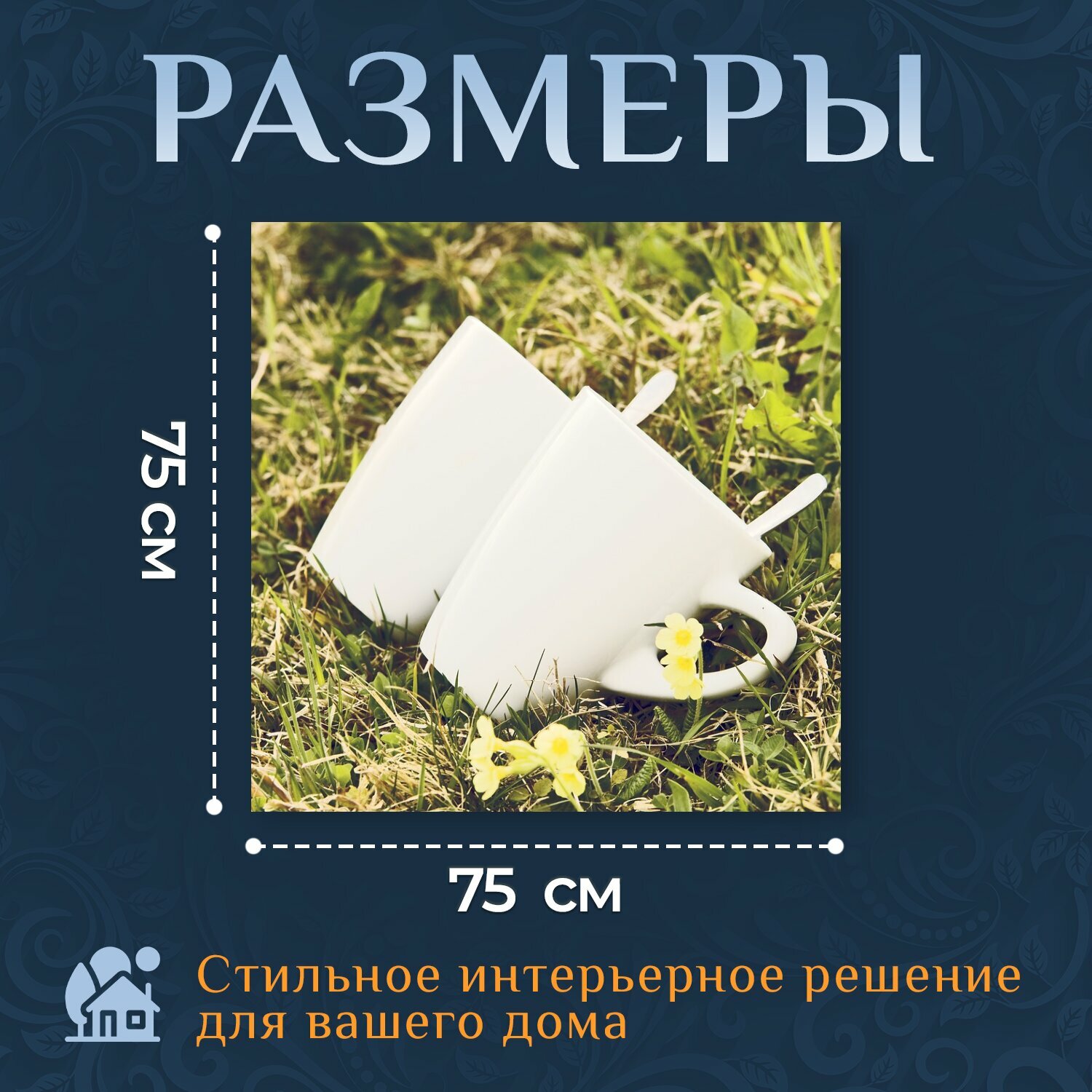 10 цен на Картина на холсте "Чашки, любовь, мало" на подрамнике 75х75 см. для интерьера