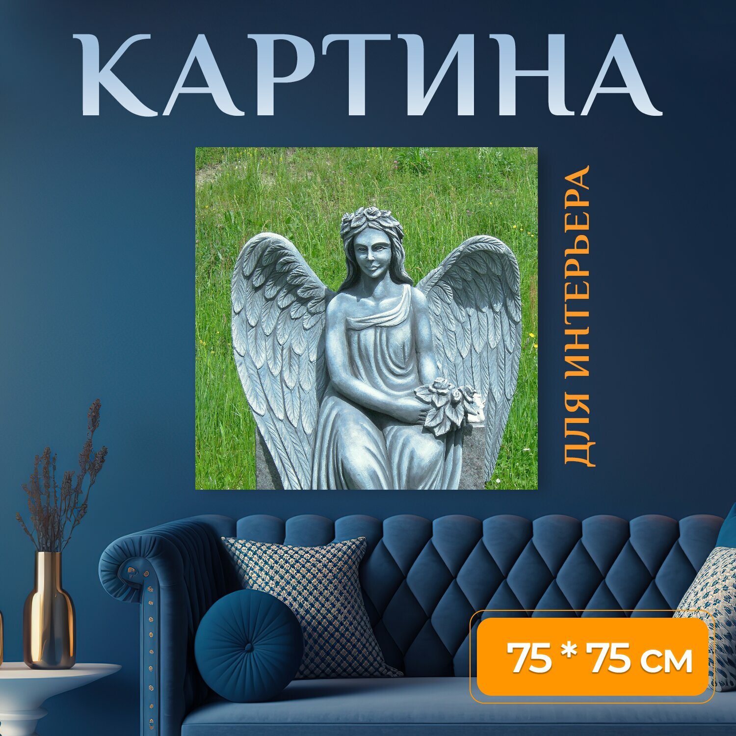 10 цен на Картина на холсте "Ангел, скульптура, природа" на подрамнике 75х75 см. для интерьера