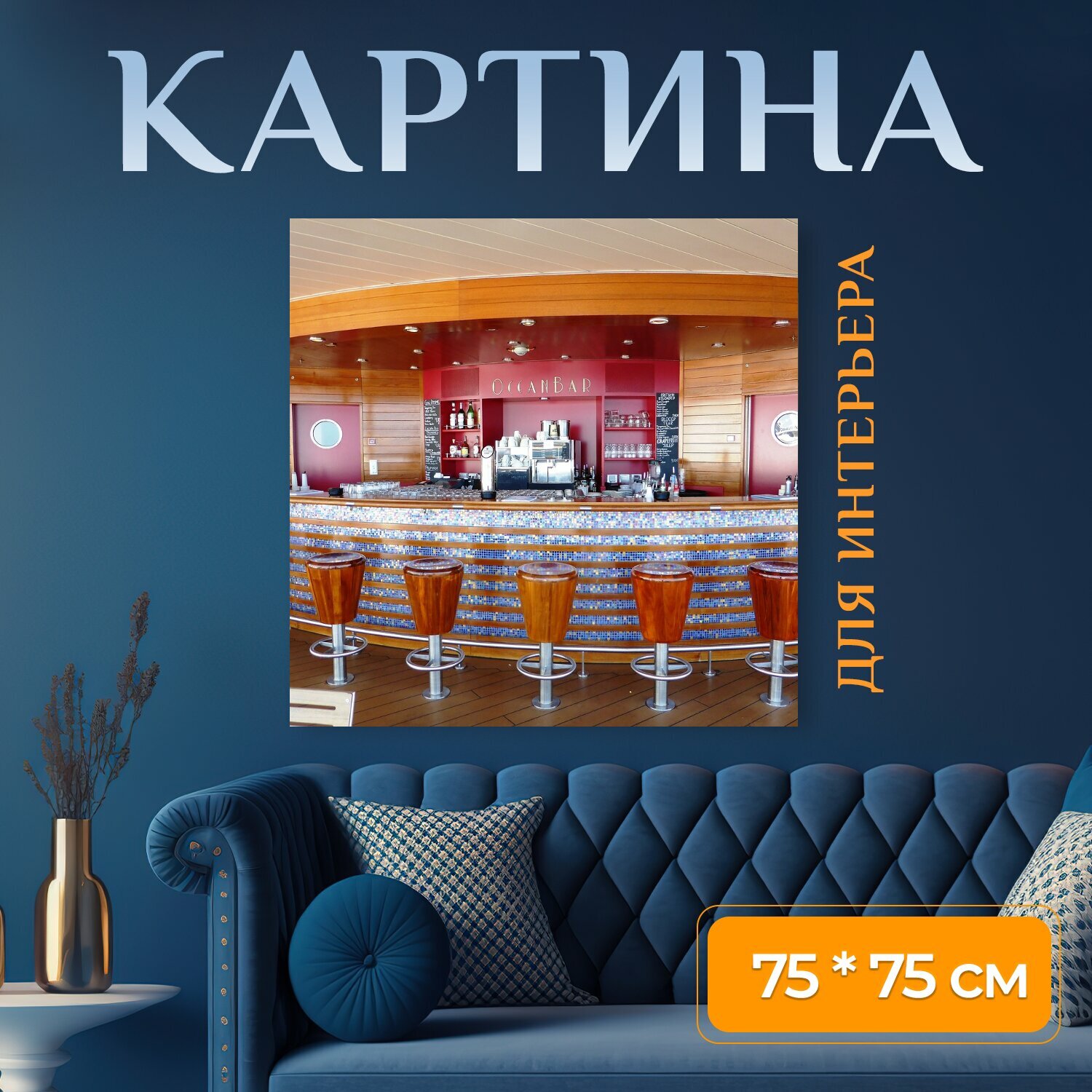 Отзывы на Картина на холсте "Питьевая, бар, высокий табурет" на подрамнике 75х75 см. для интерьера