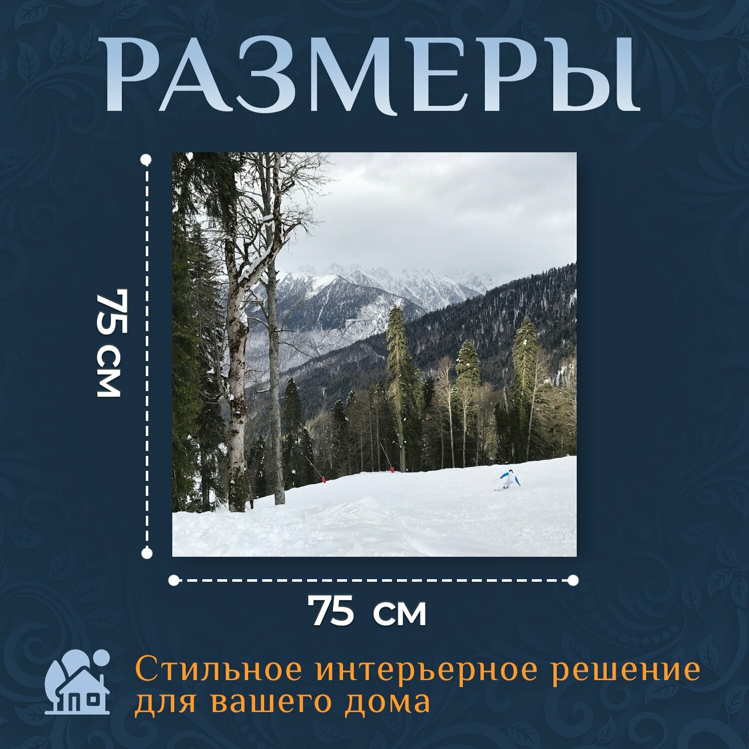Картина на холсте "Гора, зима, роза хутор" на подрамнике 75х75 см. для интерьера информация: