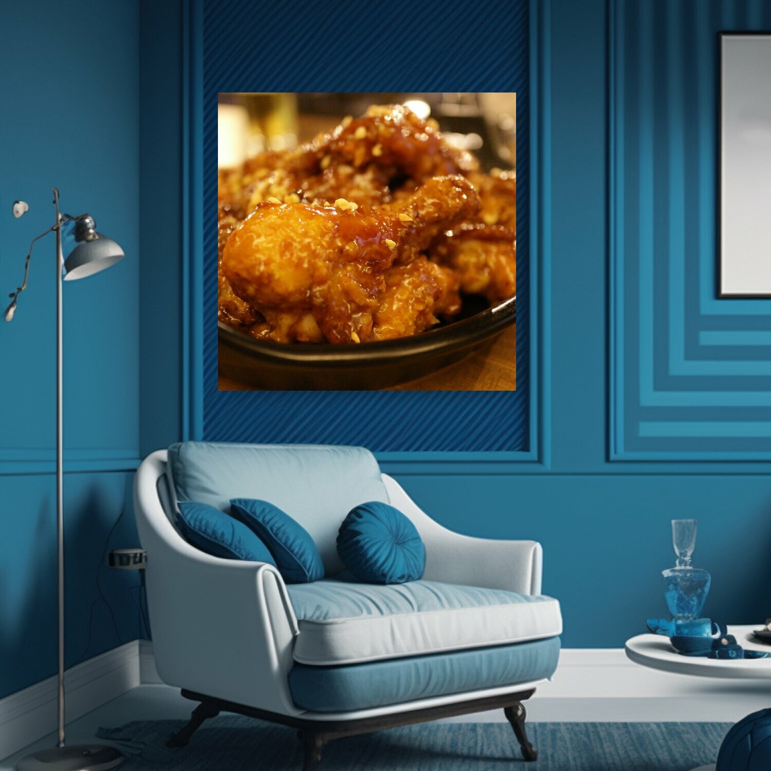 Картина на холсте "Курица, питание, курица с приправами" на подрамнике 75х75 см. для интерьера информация:
