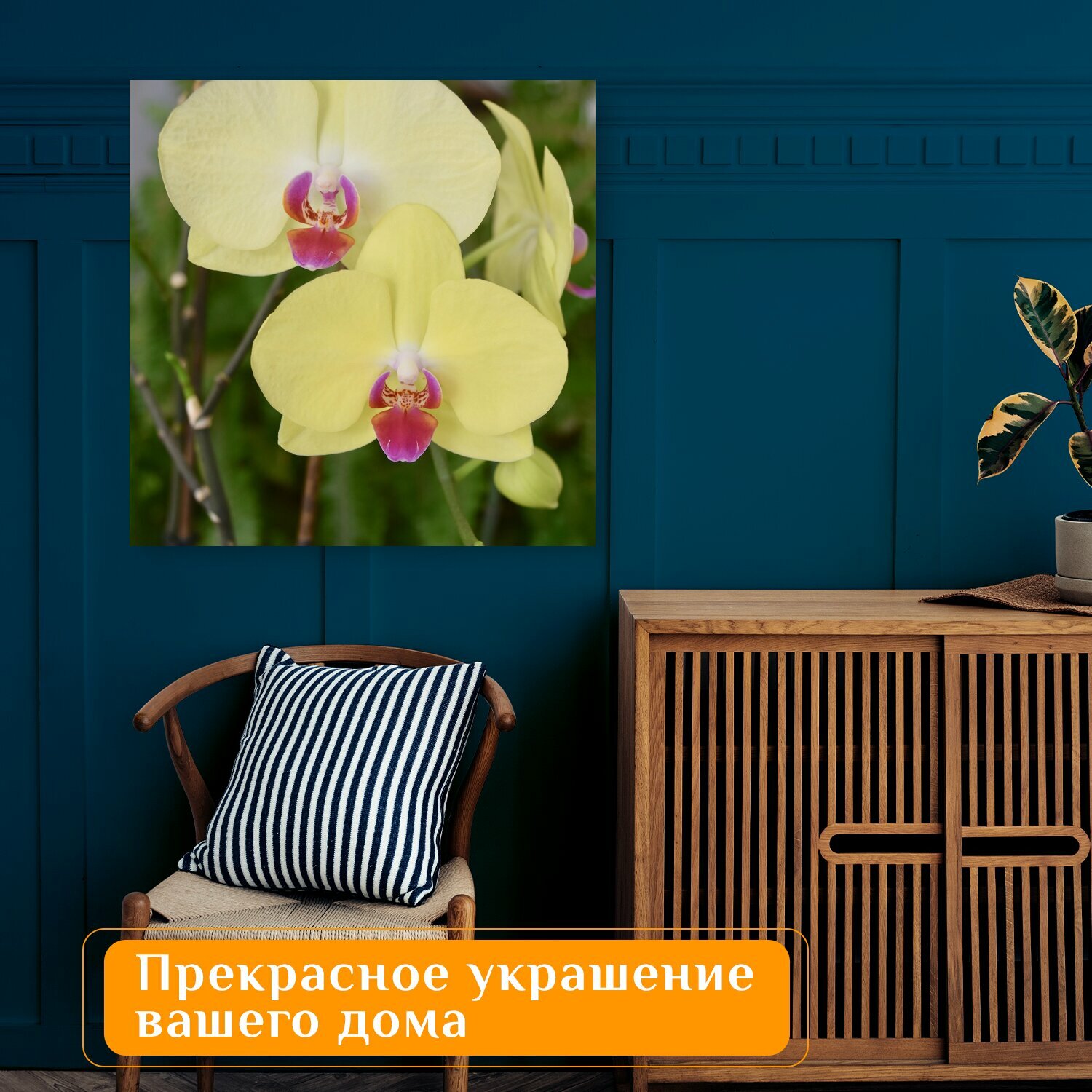10 цен на Картина на холсте "Орхидеи, цветы, завод" на подрамнике 75х75 см. для интерьера
