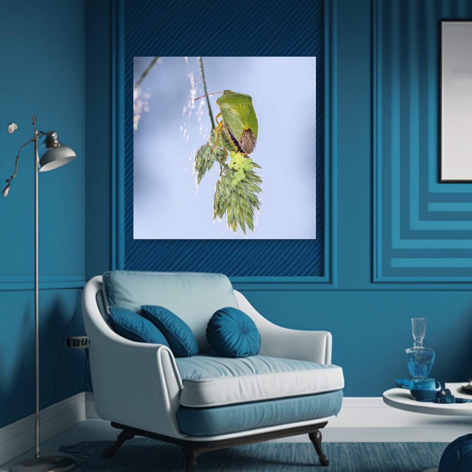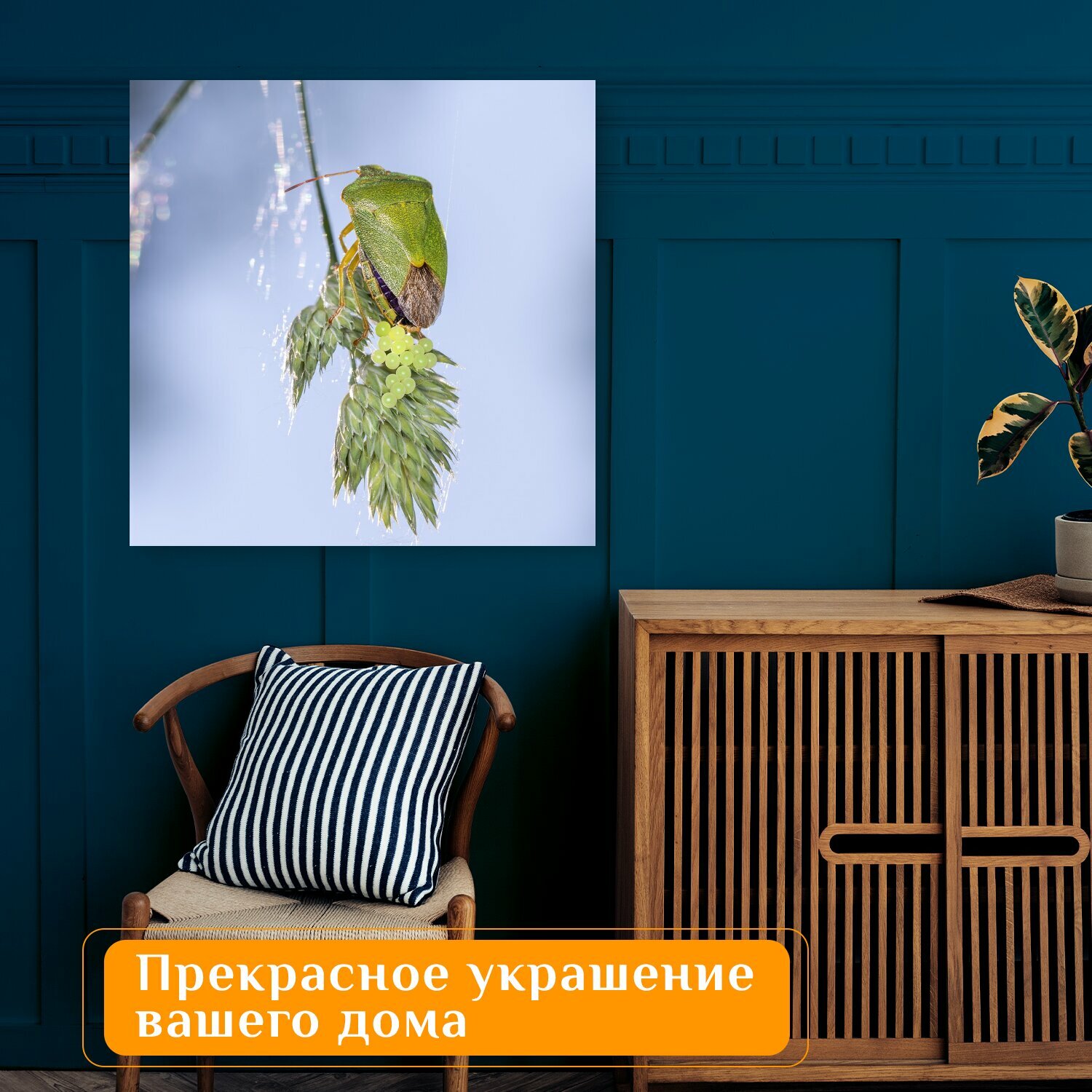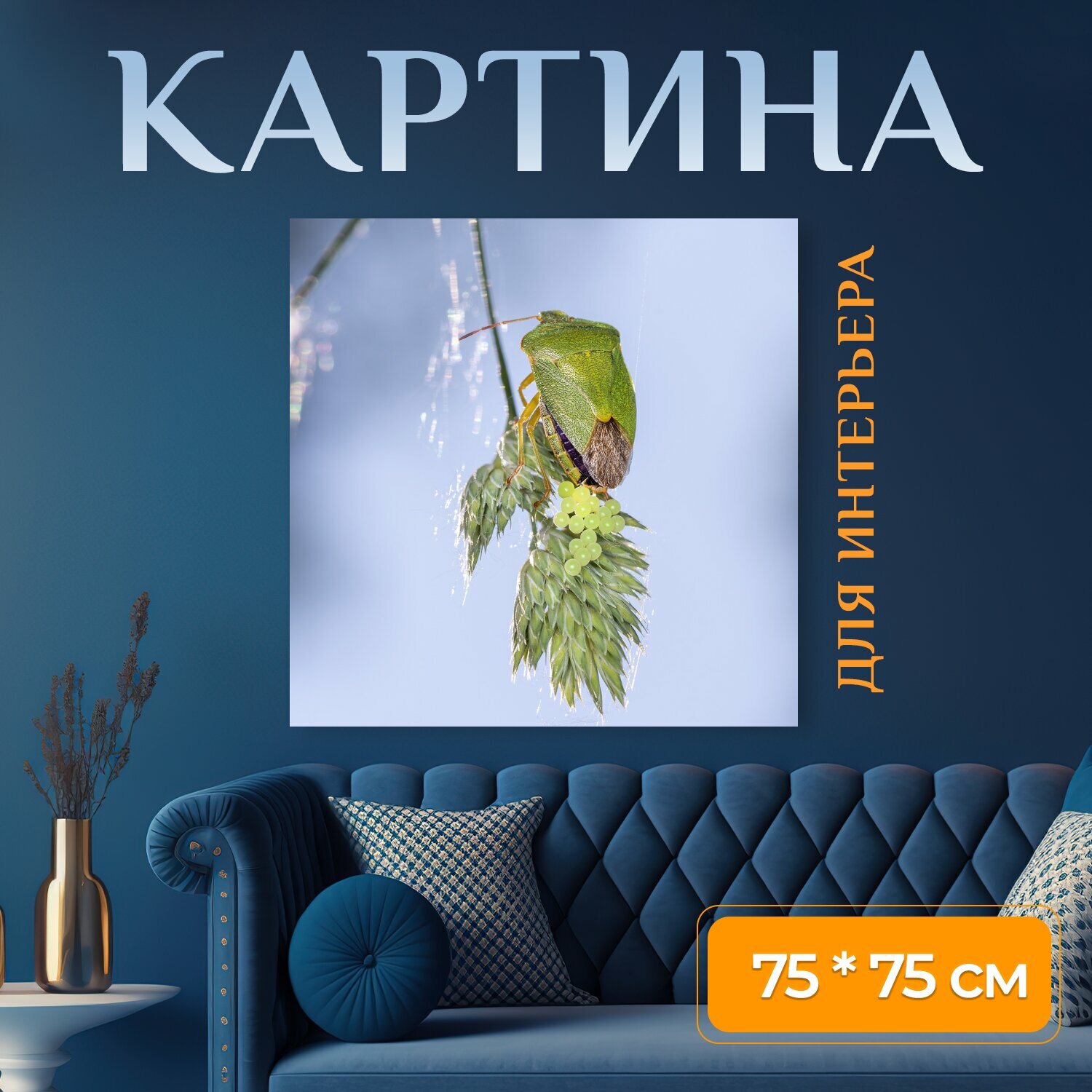 10 цен на Картина на холсте "Зеленый вонючий жук, вонь ошибок, насекомое" на подрамнике 75х75 см. для интерьера