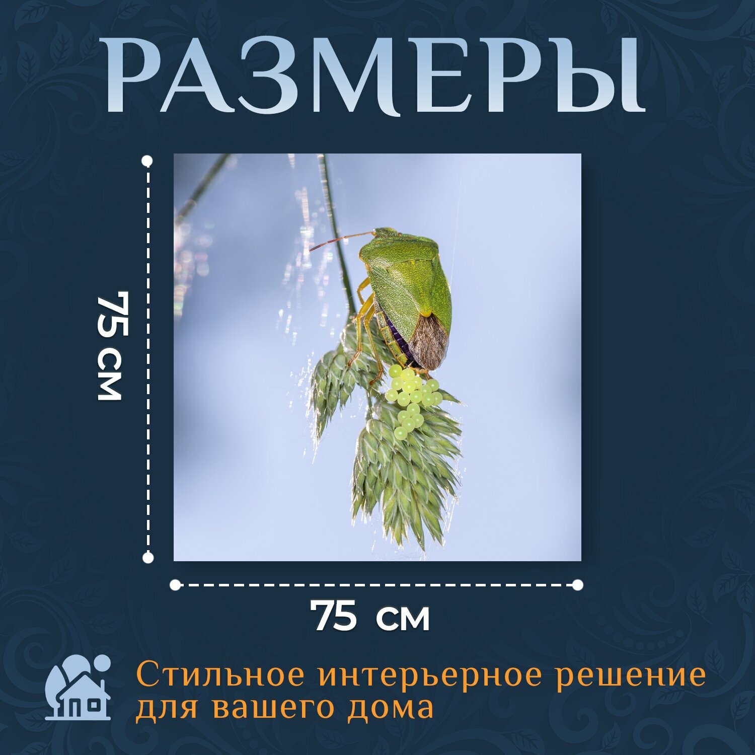 Картина на холсте "Зеленый вонючий жук, вонь ошибок, насекомое" на подрамнике 75х75 см. для интерьера информация: