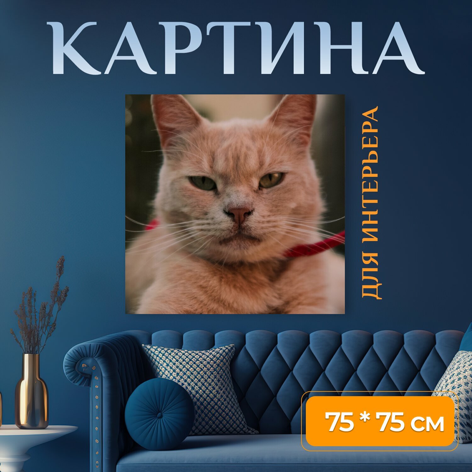 10 цен на Картина на холсте "Кошка, животное, домашний питомец" на подрамнике 75х75 см. для интерьера