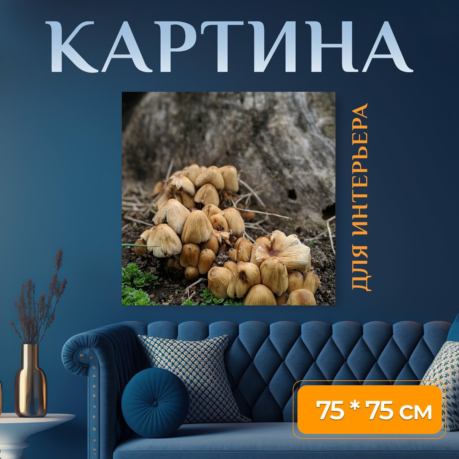10 цен на Картина на холсте "Гриб, природа, лес" на подрамнике 75х75 см. для интерьера
