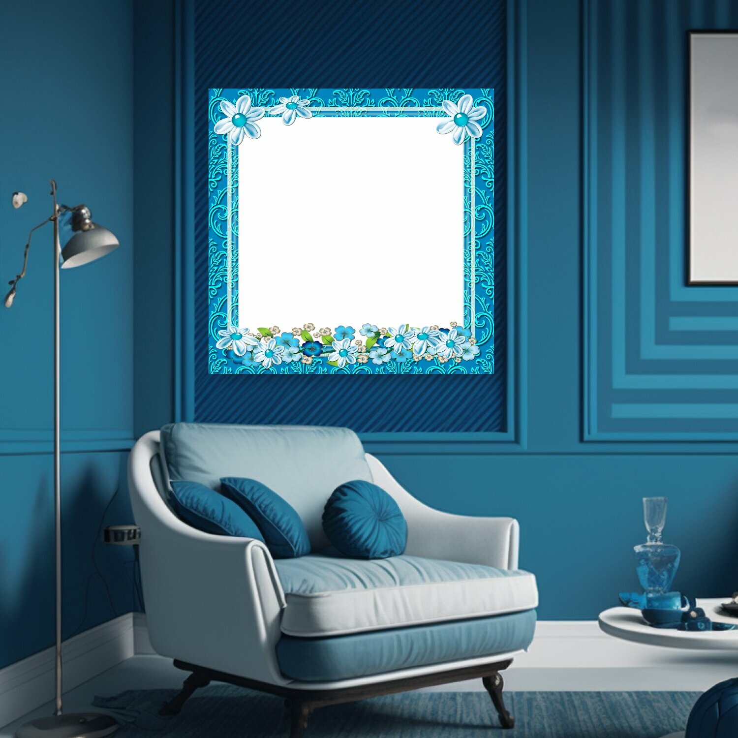 Картина на холсте "Рамки фото, рамки, селеста" на подрамнике 75х75 см. для интерьера информация: