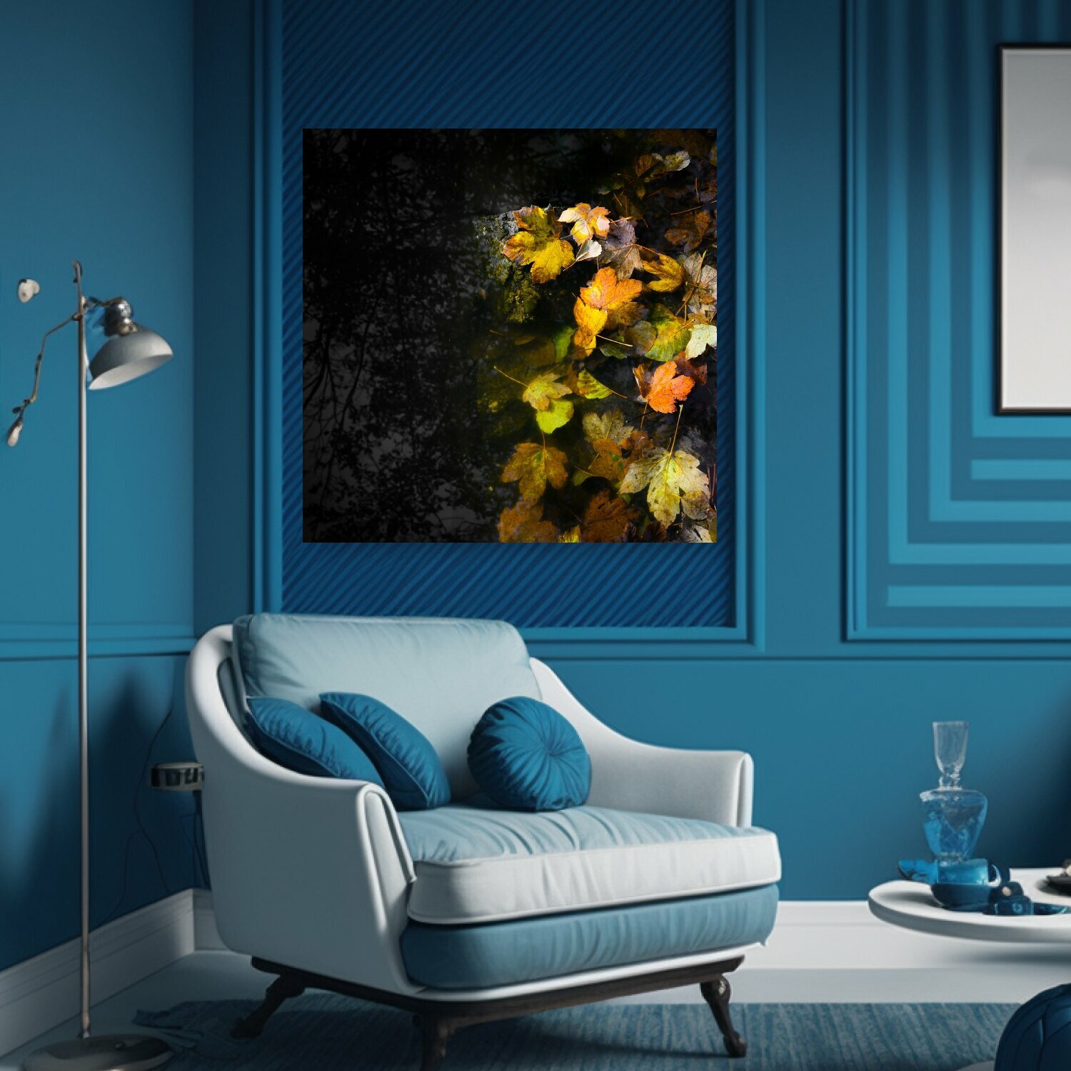 10 цен на Картина на холсте "Темный, вода, листья" на подрамнике 75х75 см. для интерьера