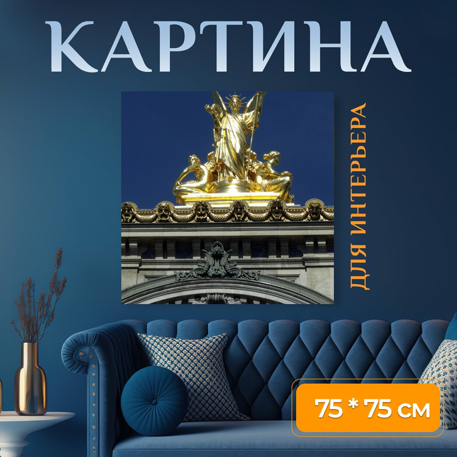 10 цен на Картина на холсте "Париж, опера гарнье, золото" на подрамнике 75х75 см. для интерьера