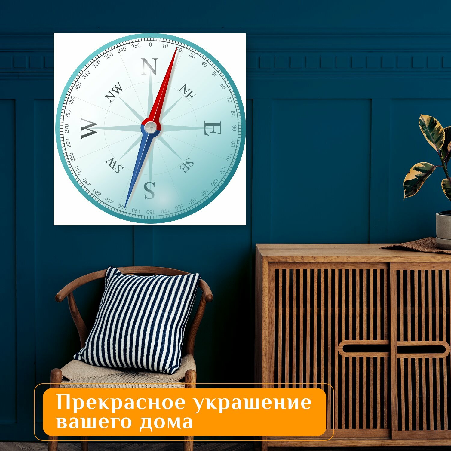 Картина на холсте "Компас, восток, к северу" на подрамнике 75х75 см. для интерьера информация: