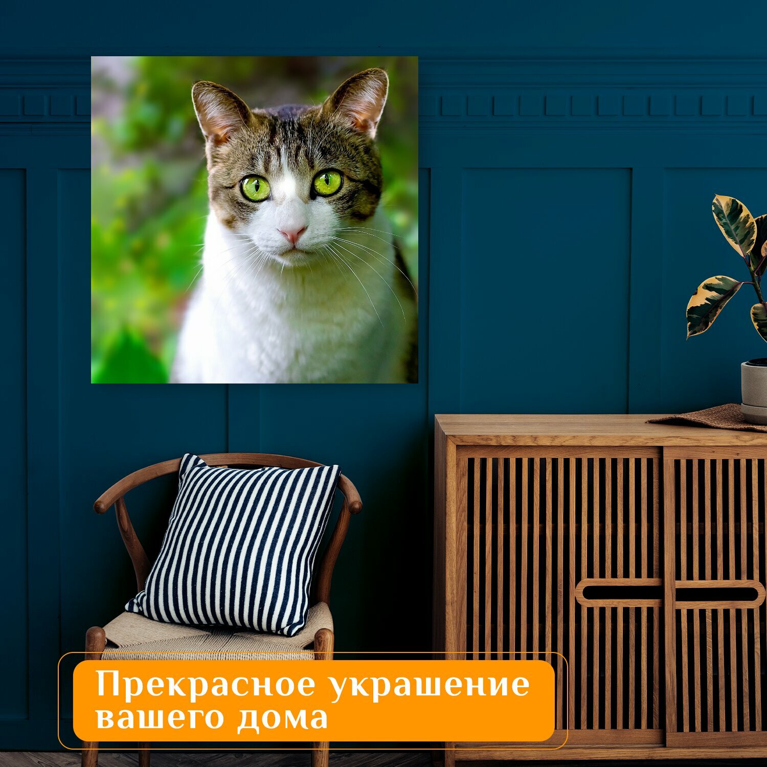 Отзывы на Картина на холсте "Кот, домашняя кошка, домашнее животное" на подрамнике 75х75 см. для интерьера
