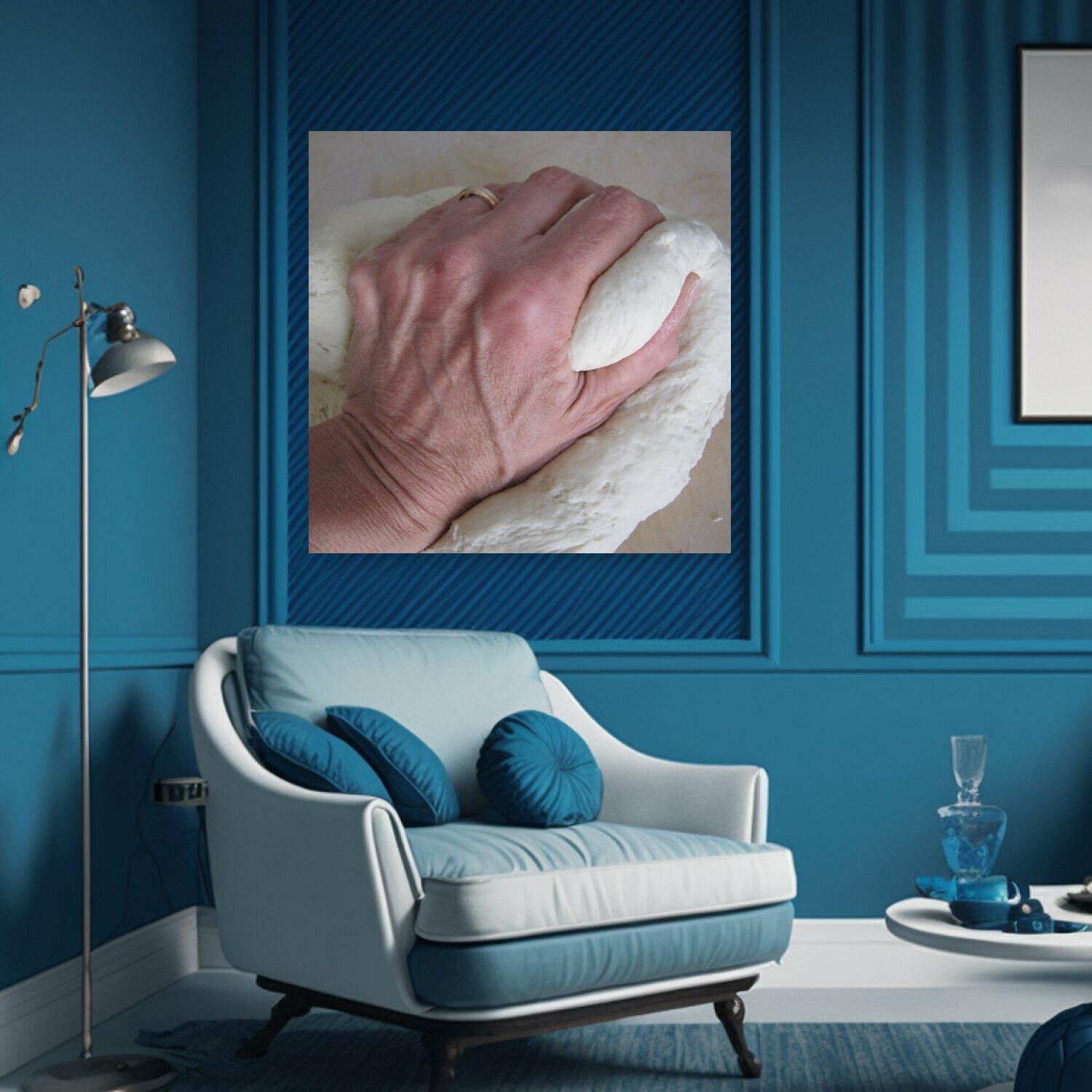 10 цен на Картина на холсте "Тесто, дрожжевое тесто, рука" на подрамнике 75х75 см. для интерьера