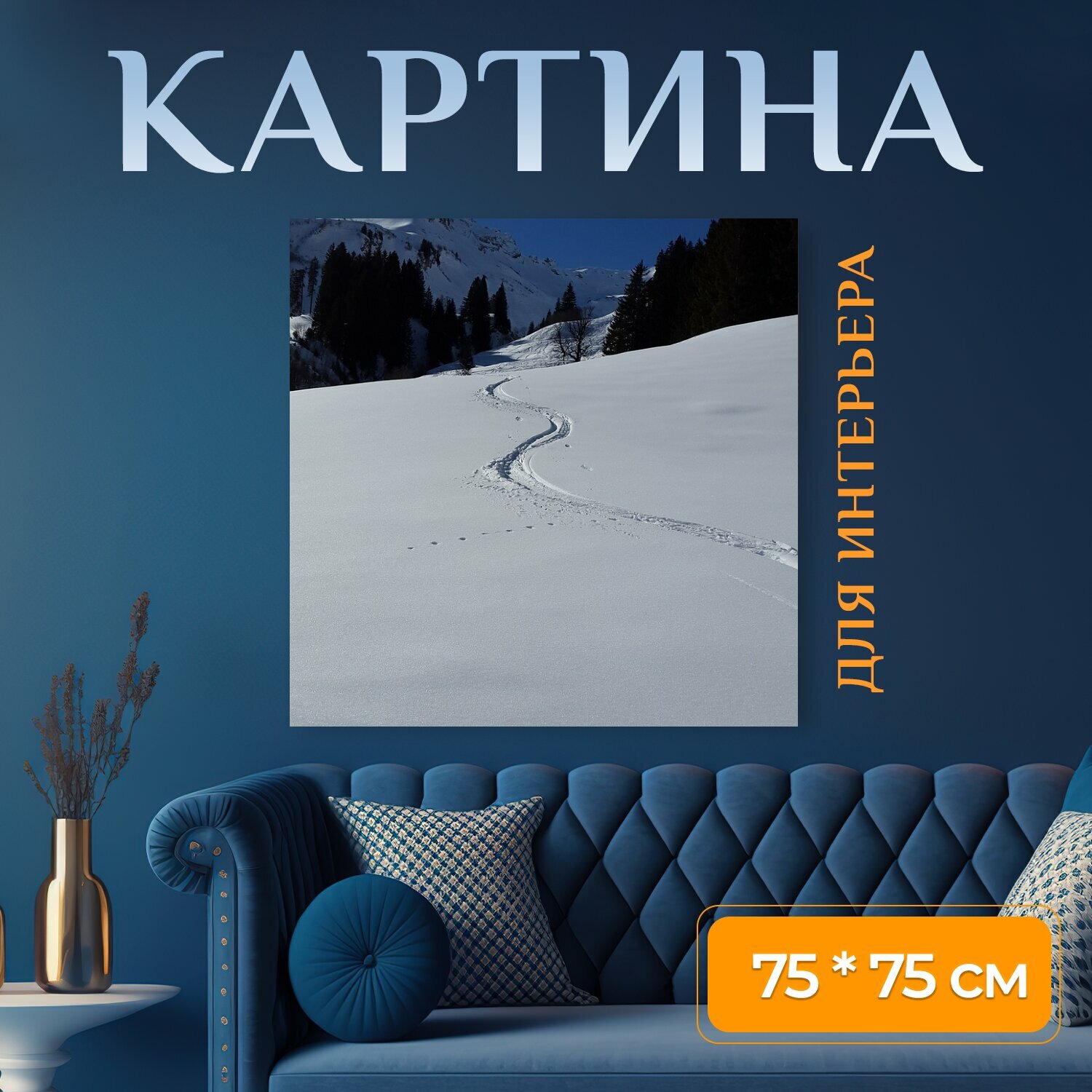 10 цен на Картина на холсте "Лыжная трасса, бэккантри лыжно, горнолыжный" на подрамнике 75х75 см. для интерьера