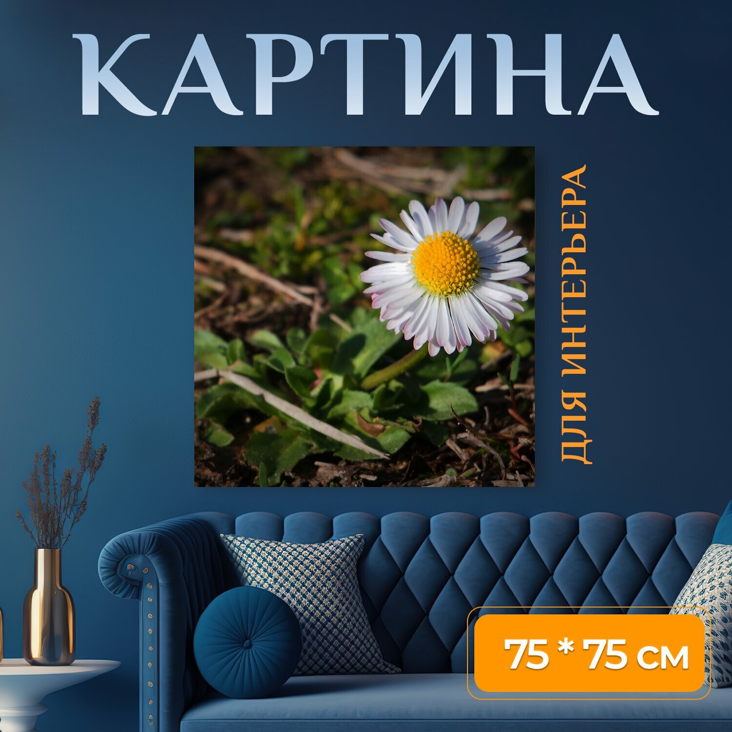 10 цен на Картина на холсте "Цветок, весна, зима закончилась" на подрамнике 75х75 см. для интерьера