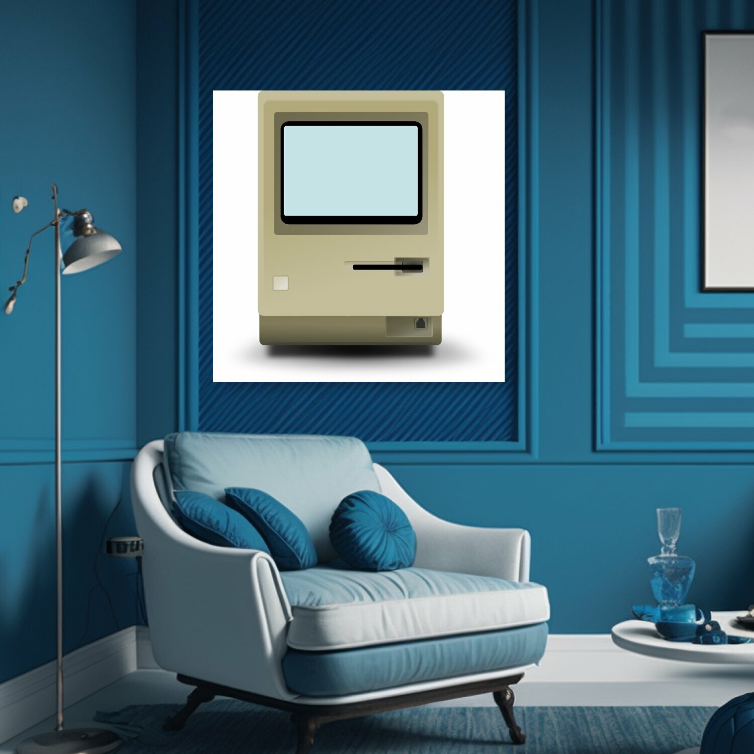 10 цен на Картина на холсте "Макинтош, компьютер" на подрамнике 75х75 см. для интерьера