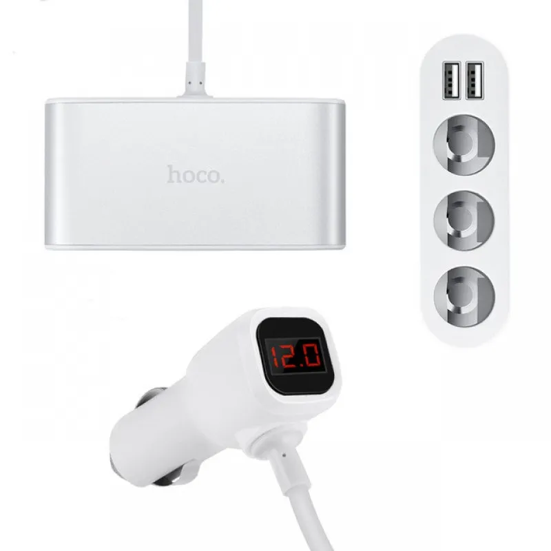 Разветвитель прикуривателя Hoco Z13 LCD серебристый информация: