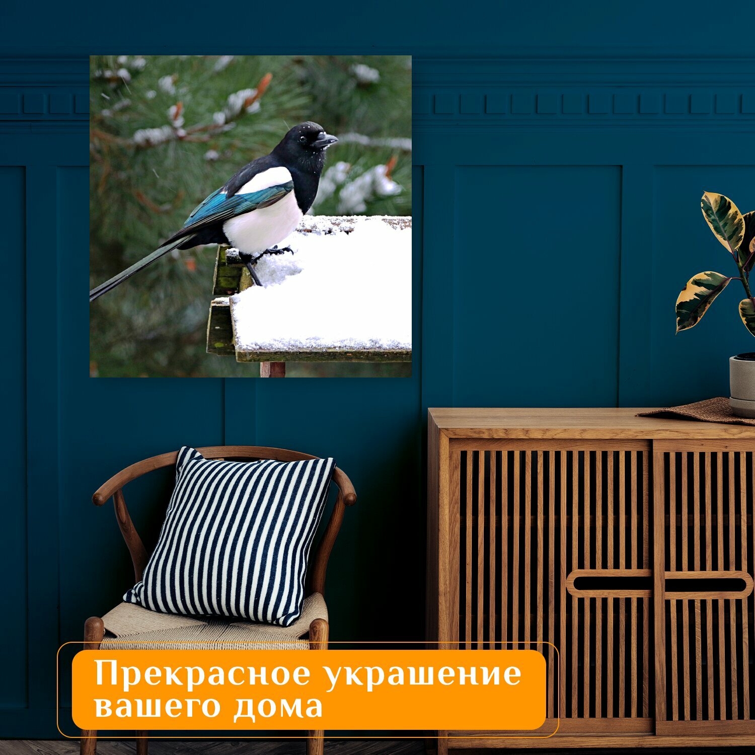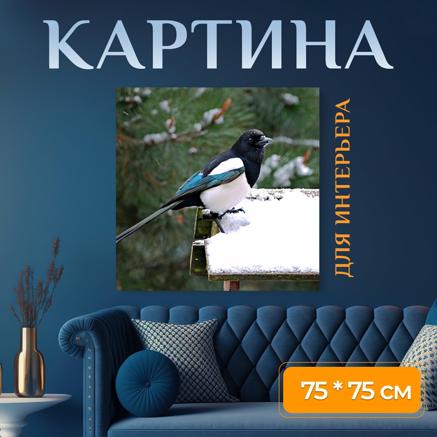 10 цен на Картина на холсте "Сорока, птица, ворона" на подрамнике 75х75 см. для интерьера