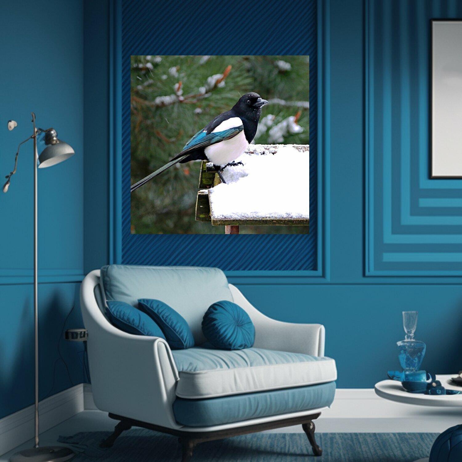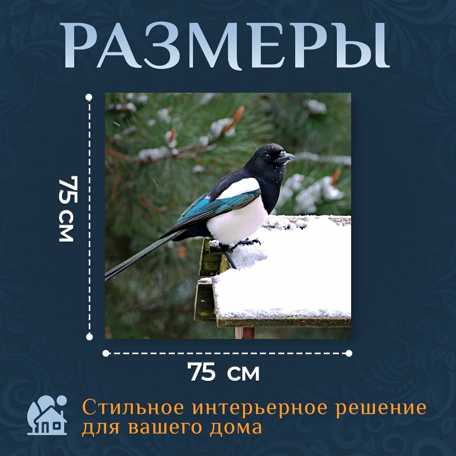 Картина на холсте "Сорока, птица, ворона" на подрамнике 75х75 см. для интерьера информация: