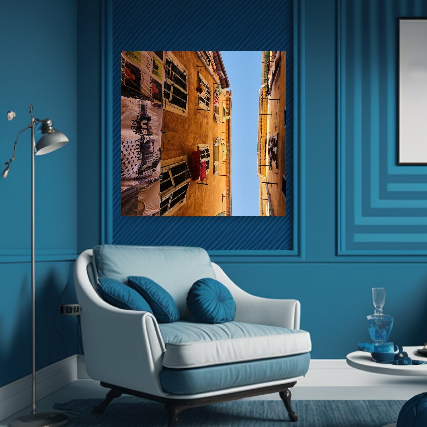 10 цен на Картина на холсте "Здания, улица, город" на подрамнике 75х75 см. для интерьера