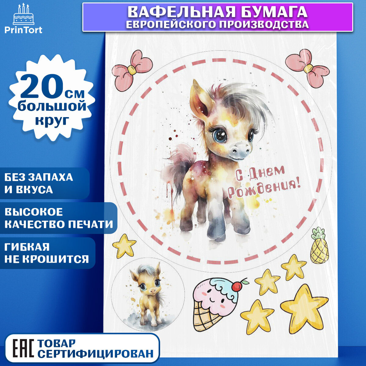 Вафельная картинка для торта Пони. Украшения для торта мальчику или девочки на День Рождения. Декор для выпечки PrinTortPT117055 275 ₽