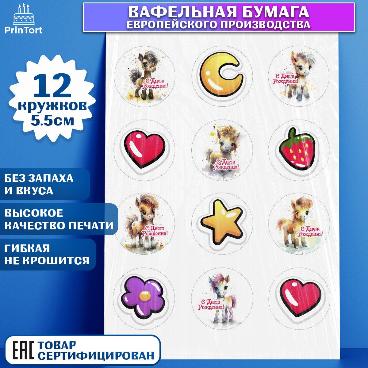 Вафельная картинка для торта Пони. Украшения для торта мальчику или девочки на День Рождения. Декор для выпечки PrinTortPT117055 275 ₽