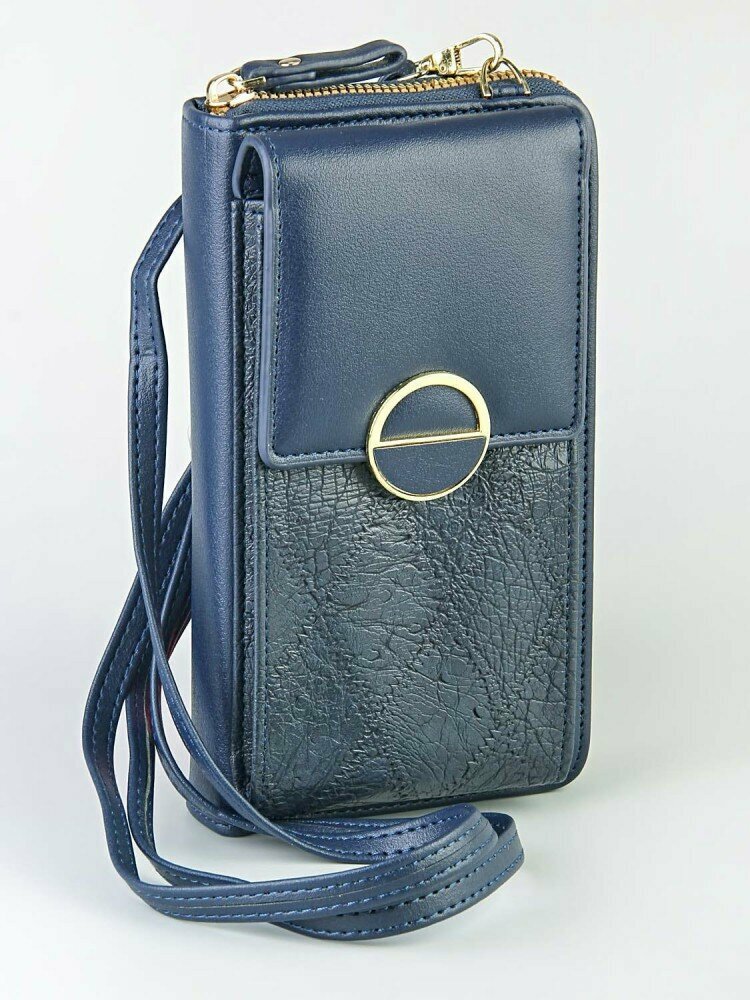 Клатч кошелек женский, экокожа, гладкая фактура, 2 отделений для банкнот, на молнии, отделения для карт и монет, темно-синий информация: