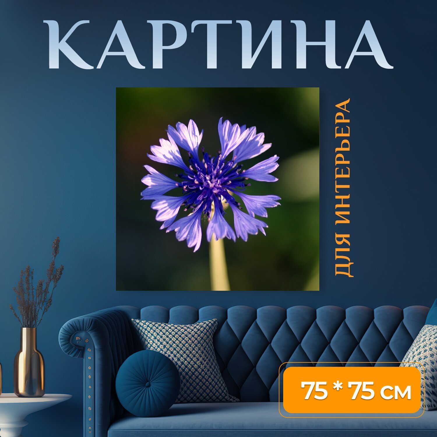10 цен на Картина на холсте "Васильковый, синяя бутылка, синий" на подрамнике 75х75 см. для интерьера