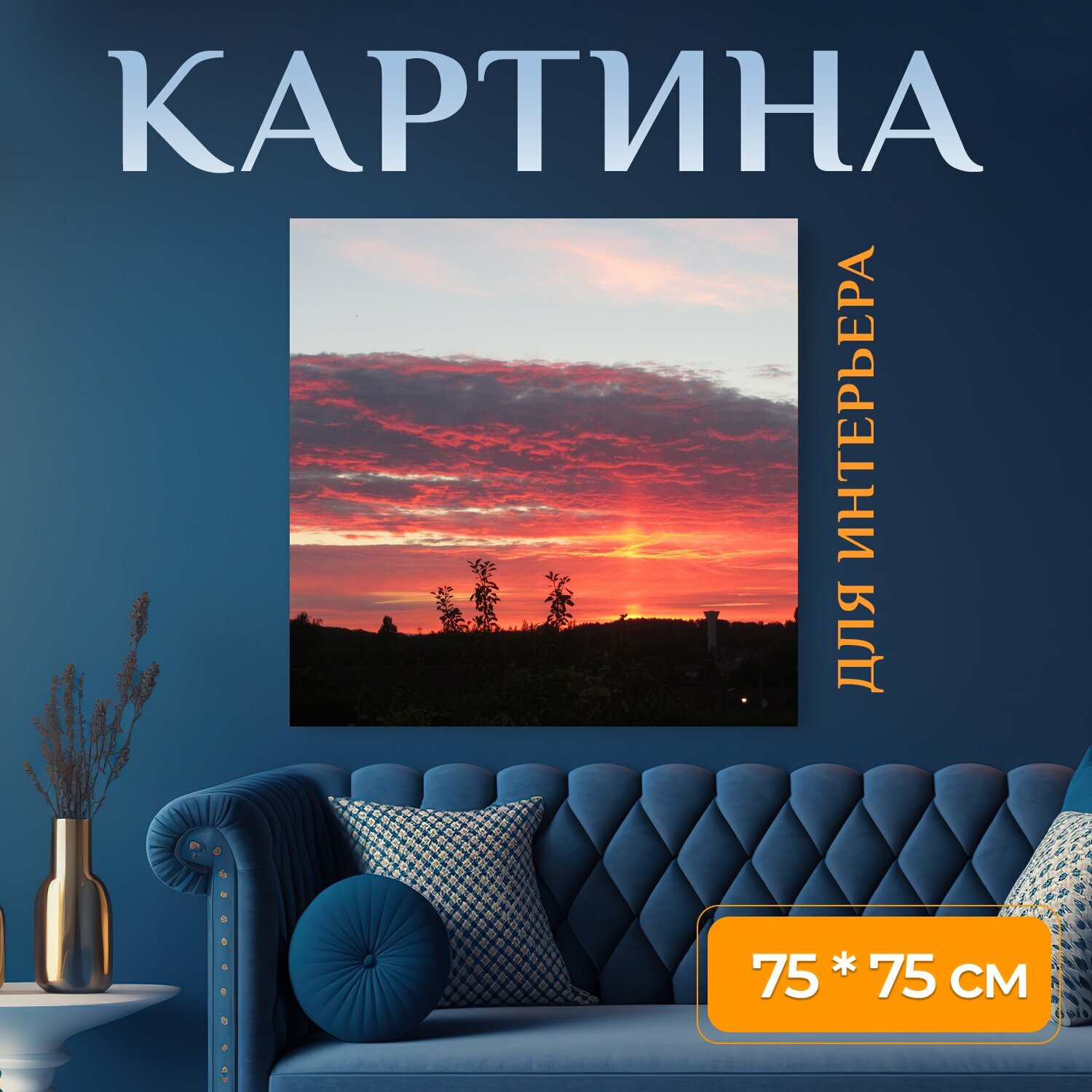 10 цен на Картина на холсте "Закат, небо, оранжевый цвет" на подрамнике 75х75 см. для интерьера